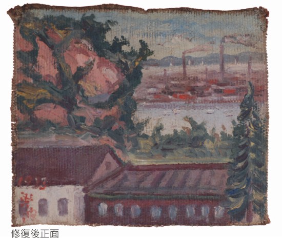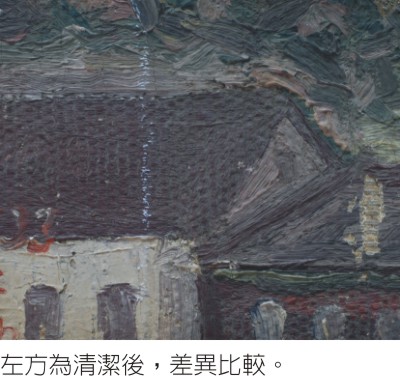陳澄波-簷上遠望(1933) 作品修復前後比較  陳澄波-簷上遠望(1933) 作品修復前後比較