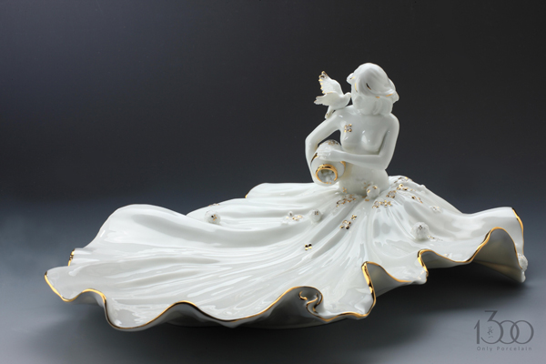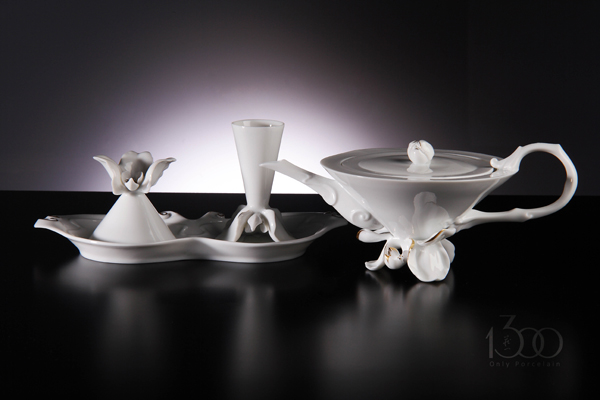 《西方古典系列-維納斯》維納斯裙盤 44*30*17 cm 2010 如母親的愛, 總是豐沛; 如情人的愛戀, 總是流洩無盡。 《西方古典系列-維納斯》女神的下午宴 壺24*14.5*26cm、杯12.5*9.5*8cm、盤16*12.5*3cm 2010 輕啟朱唇, 一飲香滑玉液, 味覺的謬思, 在唇間綻放品味。 《西方古典系列-維納斯》春的信息 22*23.5*45.5 cm 2009 這翩然而至的舞蝶, 就是春天來的信使了嗎? 嗨,你好! 《東方古典系列-器型》雙龍瓶 14*22.5*63 cm 2009 挺直如樹,高聳; 謙容如海,大量; 光澤溫潤,飽滿。 《東方古典系列-器型》《山。茶。花》典藏茶具組 22*14*9.5-壺 / ∮6.5*6-茶杯/∮5.5*9-聞香杯/10*.2.5*22(cm)-公杯/22.5*10*2.5(cm)-茶托 2011 茶桌上的風景 山之巔 俯仰天地大美 茶之韻 啜飲江河氤氳 花之姿 盛放枝頭爛漫 靜心觀山 貌似山形又非山 情悅品茶 傾杯飲盡山中泉 凝望賞花 奼紫嫣紅漫眼簾許 一桌 茶 山水 高雄市政府文化局 -文創設計結盟產業提案補助計畫首案通過補助 【創作說明】 茶杯茶壺優雅立於蘭花花瓣之上,輕托著一池茶香;若將杯身倒置,台灣寶島山的姿態躍然眼前,山巔蘭花乍綻,透著金色晨曦光芒,茶盤上翩翩舞蝶暫歇,與山、水、花虛實相映,觀山賞岳,蘭映茶香,勾勒出一抹茶桌上的風景。
