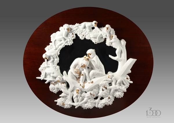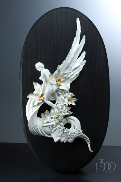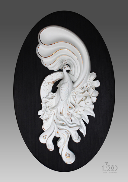 《東方古典系列-器型》桃花瓶 20*10*46 cm 2010 紋飾纏繞著我一身的曼妙華美, 每一次轉身, 都有驚豔。 《東方古典系列-台灣動物系列》圓合 78*90 cm (含背板) 2009 樹藤上的一家人, 輕柔撫觸, 溢滿親暱的愛。 乘風 W129*H80 cm (含板) 2009 雲霧間, 我來去自如。 韻 W48*H75 cm (含板) 2009 姿態溫婉, 如蘭花垂掛滿枝條, 靜謐而悠長。 《東方古典系列-台灣動物系列》富貴開屏 43*78 cm (含背板) 2009 讚嘆的目光有如襯托美麗的花朵, 讓四射光芒的我更加耀眼。