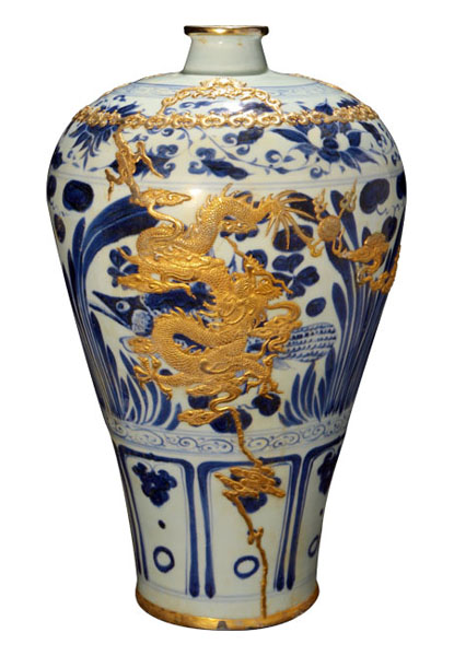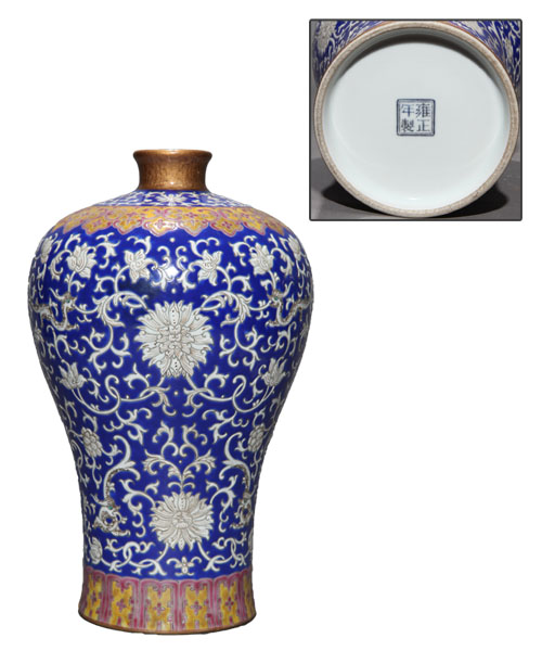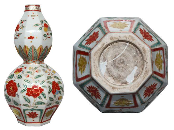 五彩立粉加金折枝花巴棱葫蘆瓶