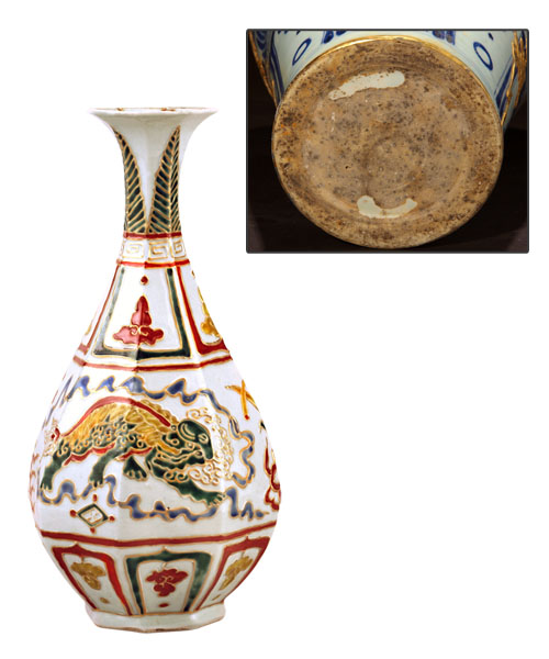 樞府釉瀝粉加金五彩獅紋玉壺春