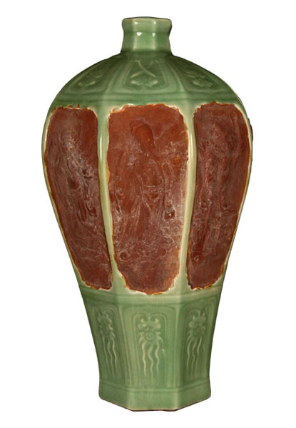 龍泉釉開光八仙梅瓶
