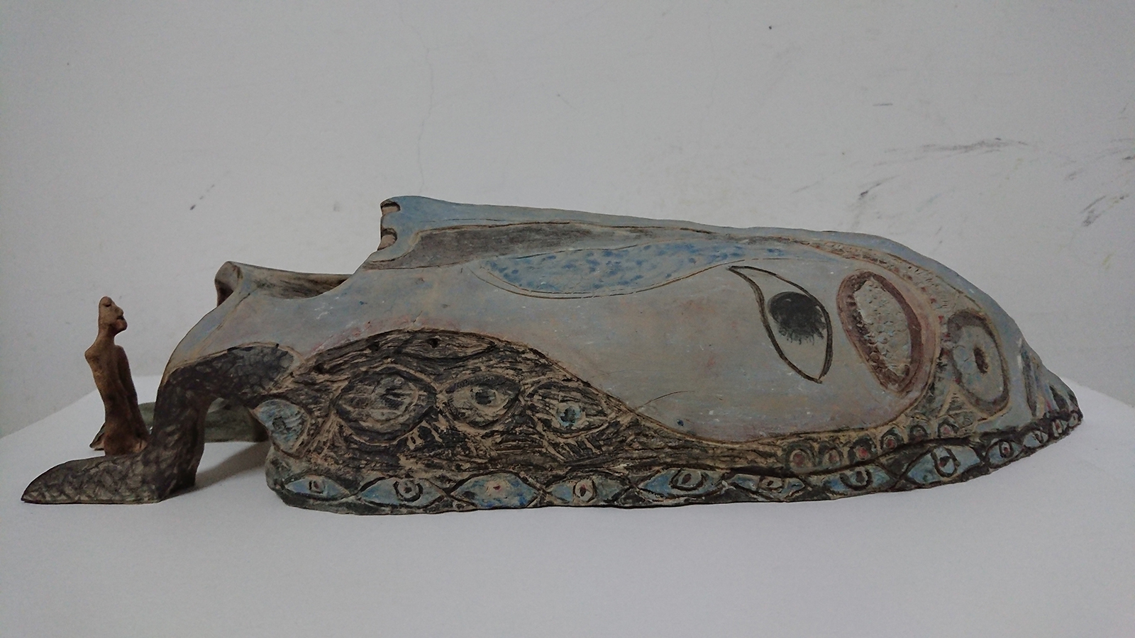 西班牙藝術家米莉安(Myriam Catala Soler)的作品以半具像陶塑素燒手上彩為主,在「身體」與「人頭」系列中的作品形式簡約裡帶有繁複性及藝術家本身觀看世界的視角,就如同她「人頭系列」裡的眼睛圖騰,「作品中的眼睛,一隻來自西方,一隻來自東方。藉由這對雙眼,可以往內看,往外看。」在那「收」與「放」的節奏裡,靜靜地觀看生命的變化,同時也注視著觀者與環境的變化。在這創作的過程中米莉安透過「物」與「我」、「內在」與「外在」、「精神」與「物質」相互滲透,互相參與的過程,來探求自己心象與圖騰的對話。與謝其昌一致,"直覺"一直是米莉安創作的形式與手法,在直覺中找尋內在的真實感與實在感。謝其昌與米莉安,一個在感性直覺的觸動中,追尋繪畫的絕對自由;一個在感性直覺的判斷中,還原立體圖像視覺的方位!
