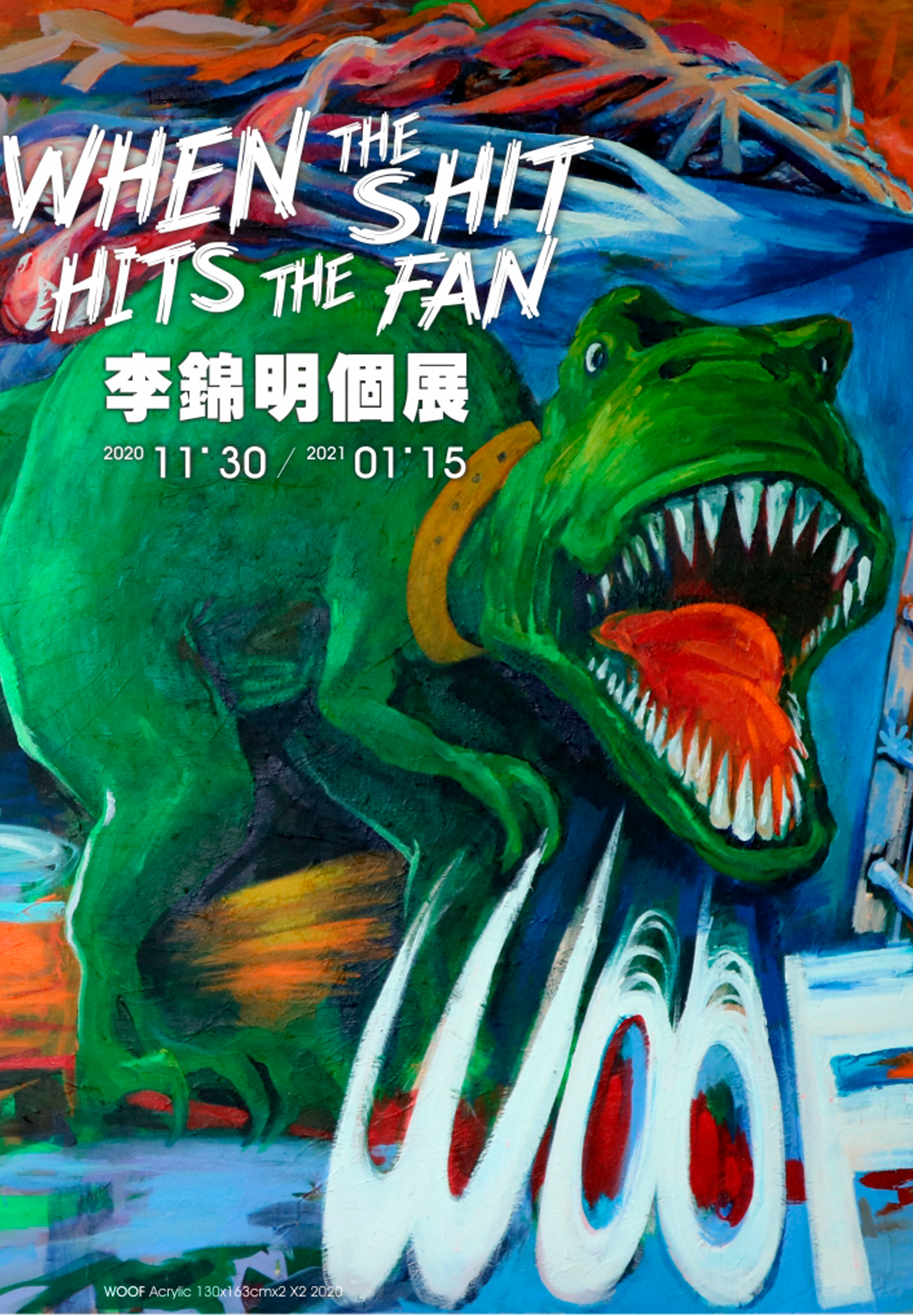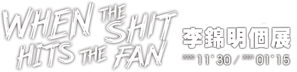 李錦明的創作生涯,一直在探討全球化的當代社會下,個體於台灣後殖民文化中的歷史軌跡與生存處境。本展脈絡來自他父親生前口述台灣於二戰遭美軍轟炸的真實經驗,因此他從2017年在新苑藝術推出個展「So it goes就是這樣」,便以戰鬥機作為強權迫近的敘事符碼開展創作議題;2018年新浜碼頭藝術空間個展「彈彈的哀傷」,強化了列強的炸彈在台灣政治、經濟、文化、軍事轟炸的意象;本次主題「When the shit hits the fan」則是從戰鬥機的螺旋槳概念發想,描繪政治受財閥的貪婪牽引,造成了一連串的災難,個體身不由己,被捲進各種事物攪和在一起的漩渦。由於李錦明以倖存者的視角進行創作,也由此構成了「倖存三部曲」。