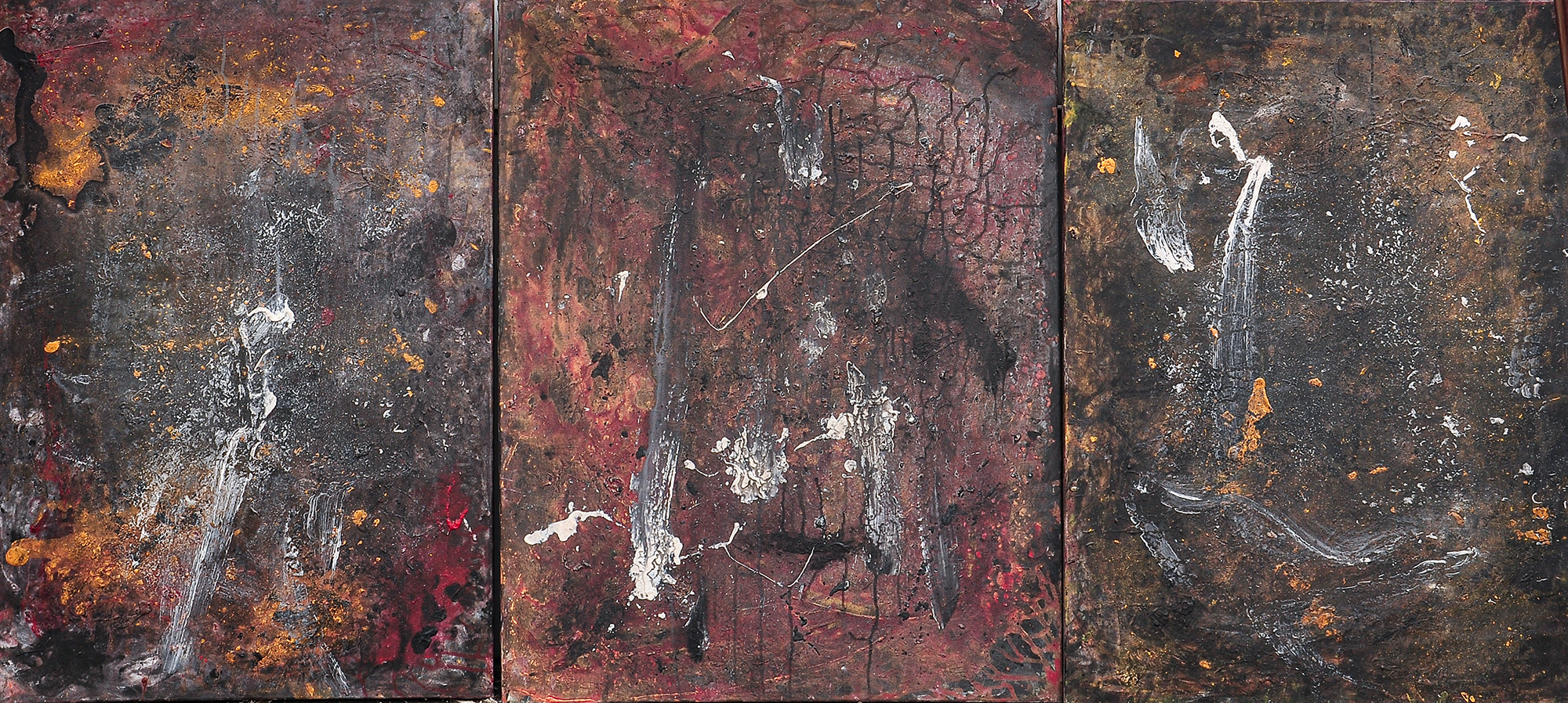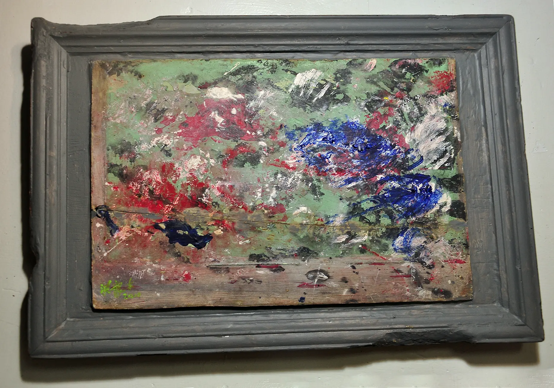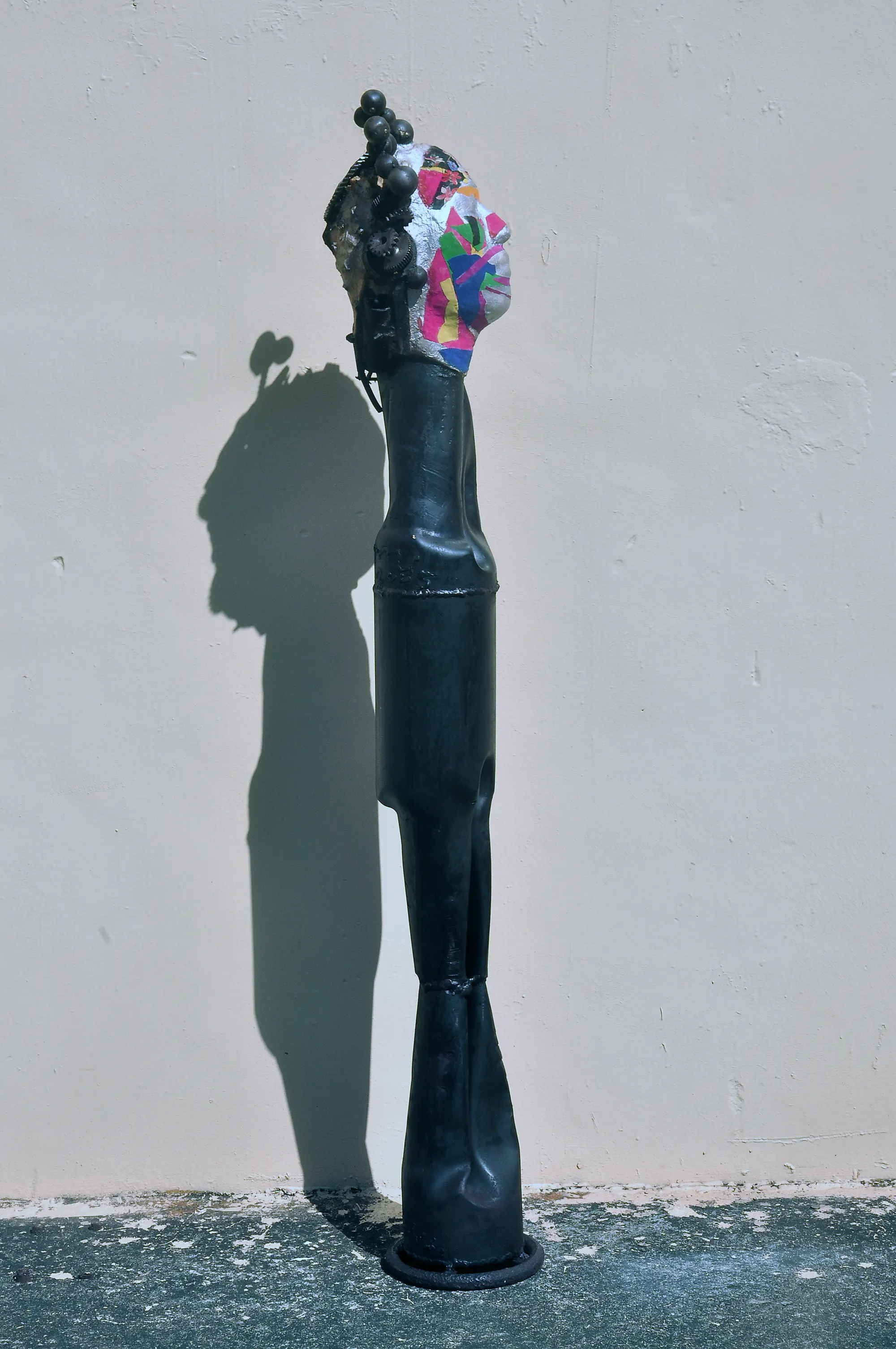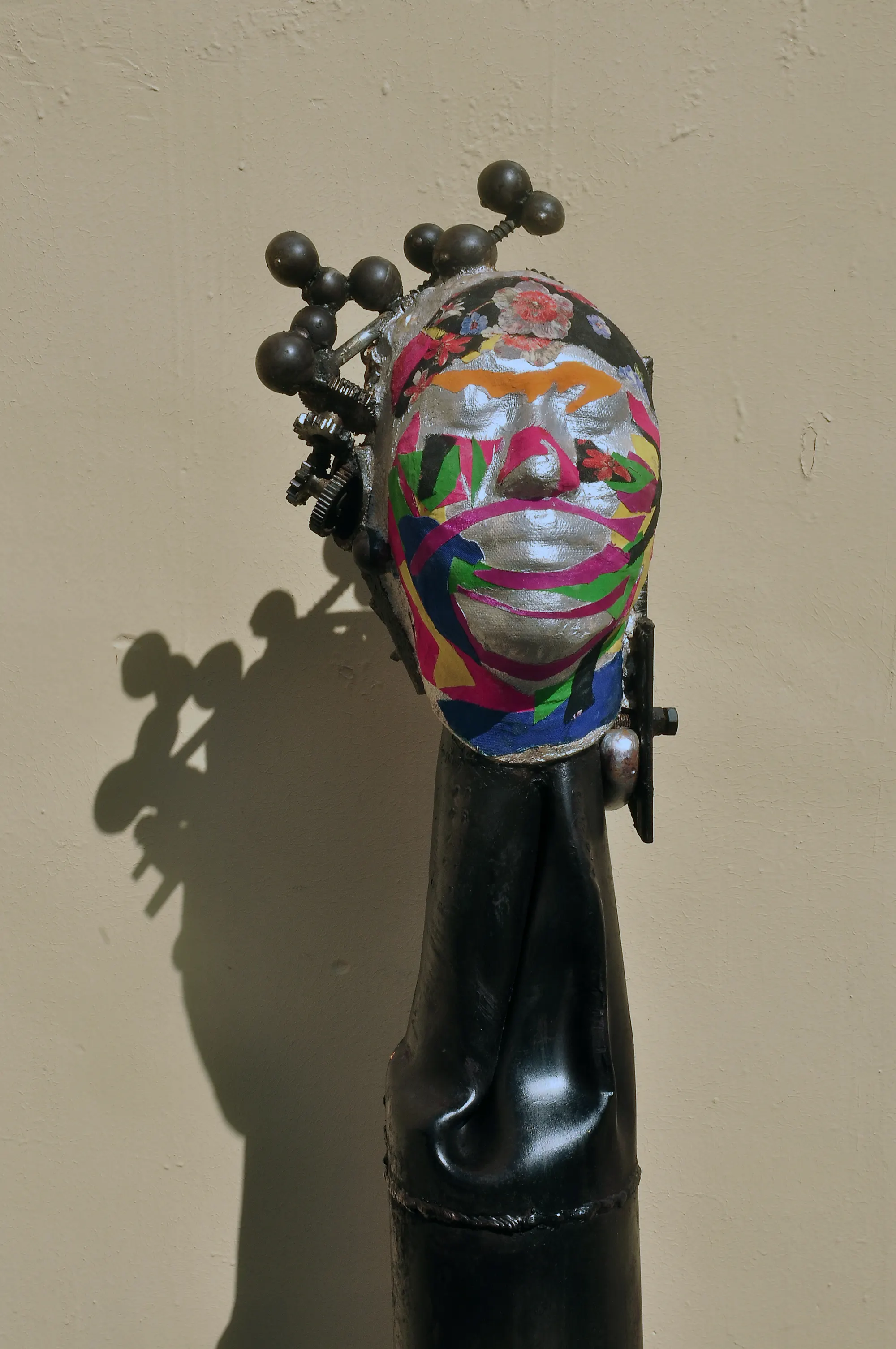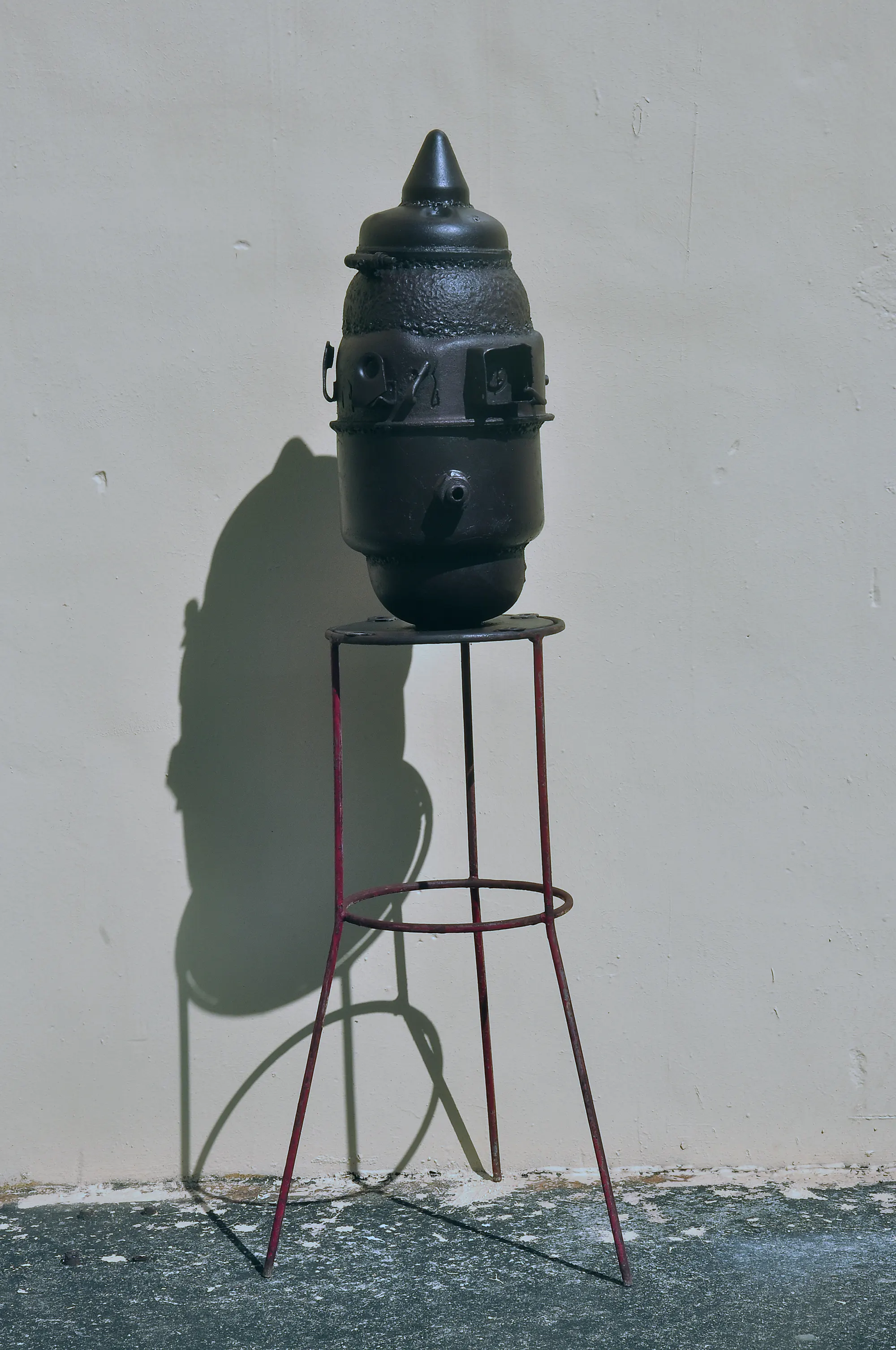 近期作品仍以鐵現成物創作媒材,創作中不事先打稿,按著意念自由建構,透過對鐵件的自然造形與身體(手)的勞動(包括燃燒與焊接),使作品呈現豐富的色彩與鐵銹况味是最大的特色。
