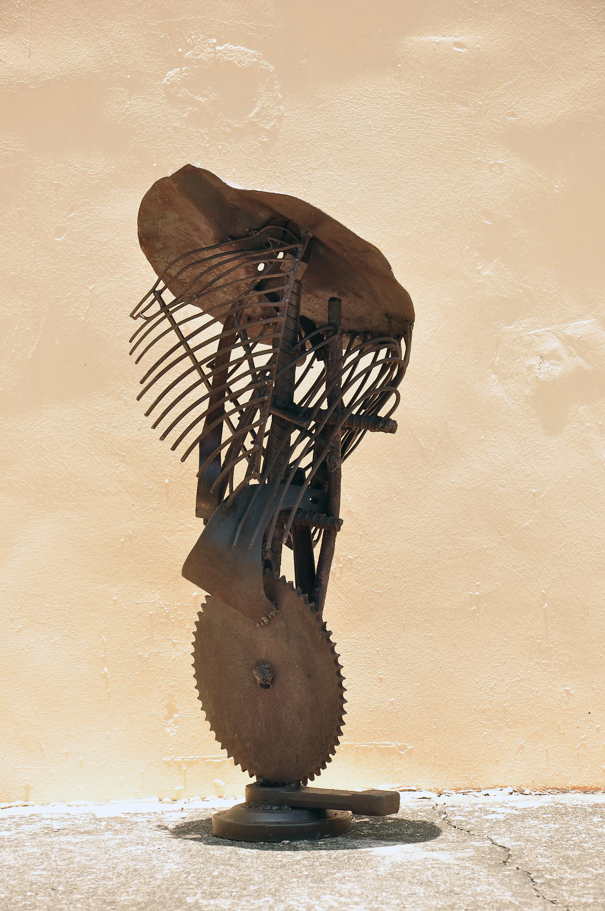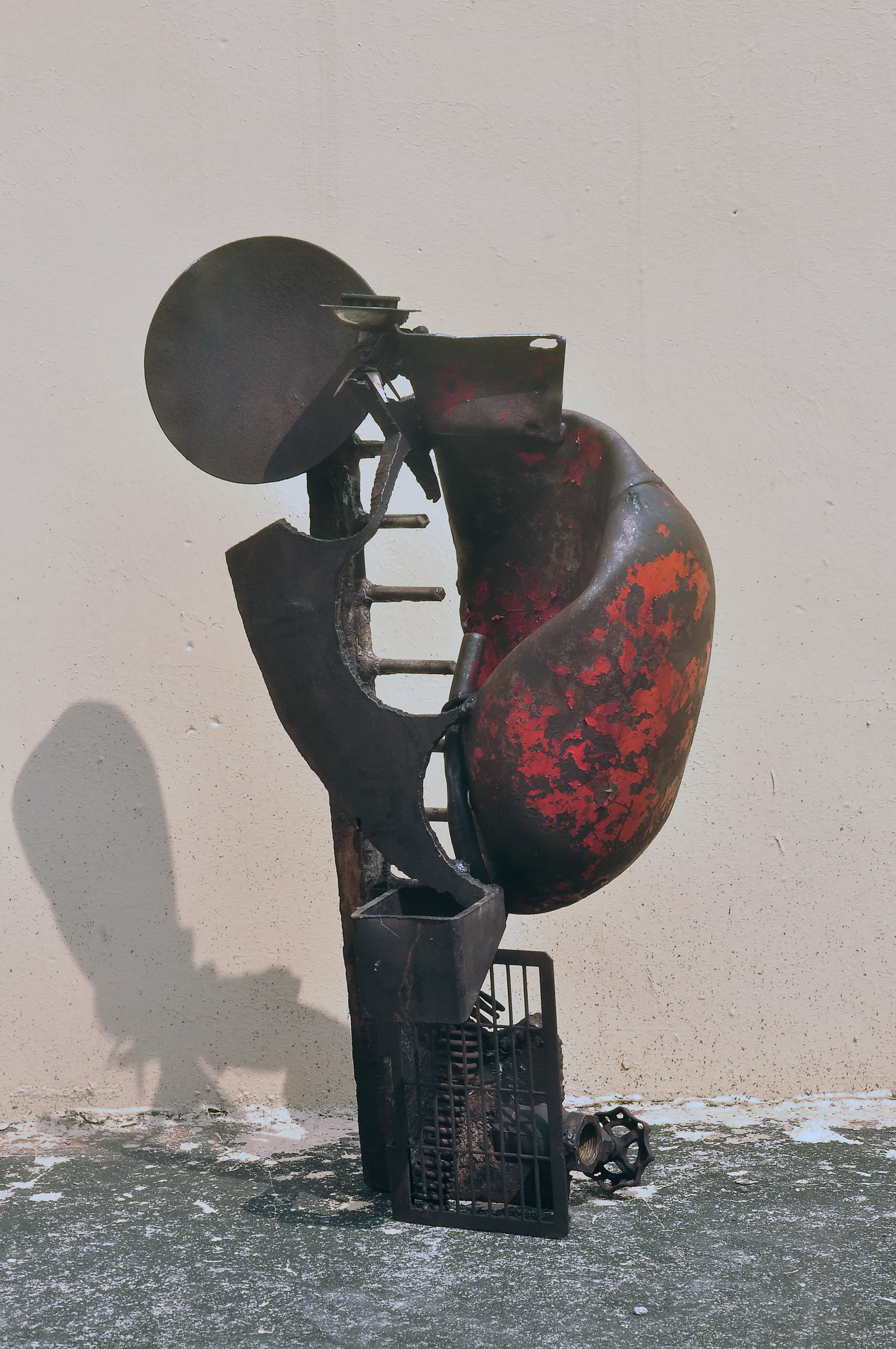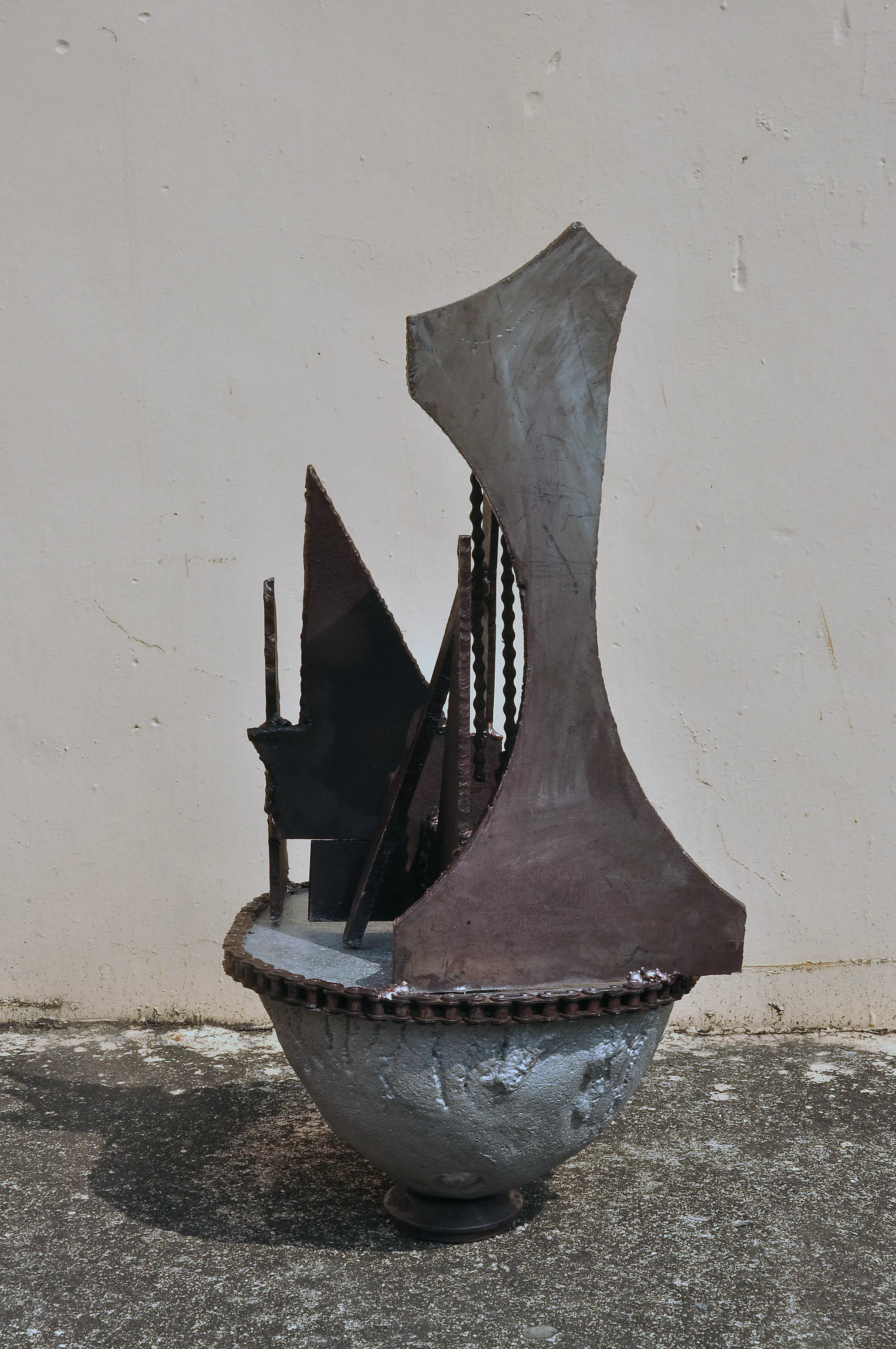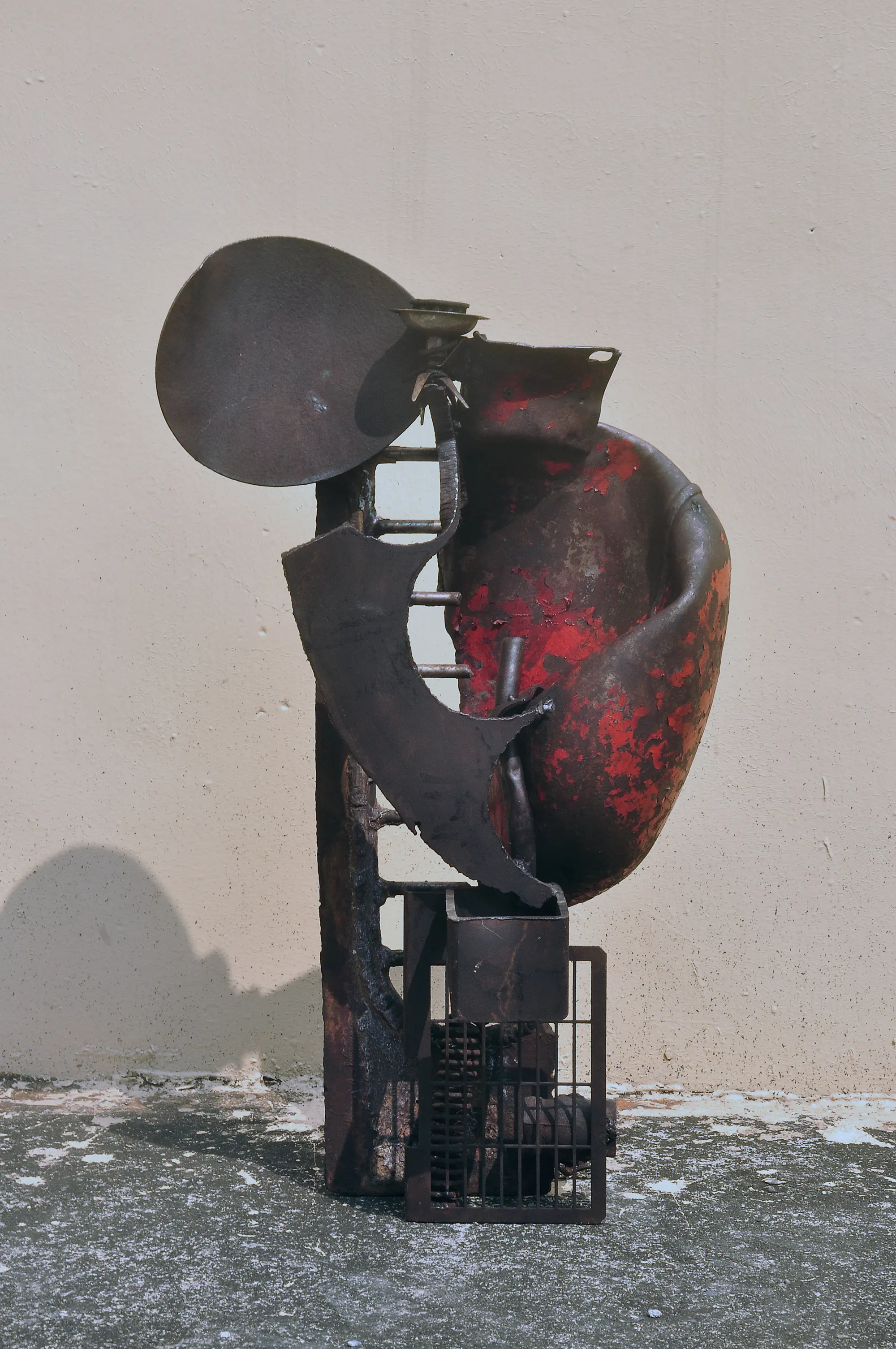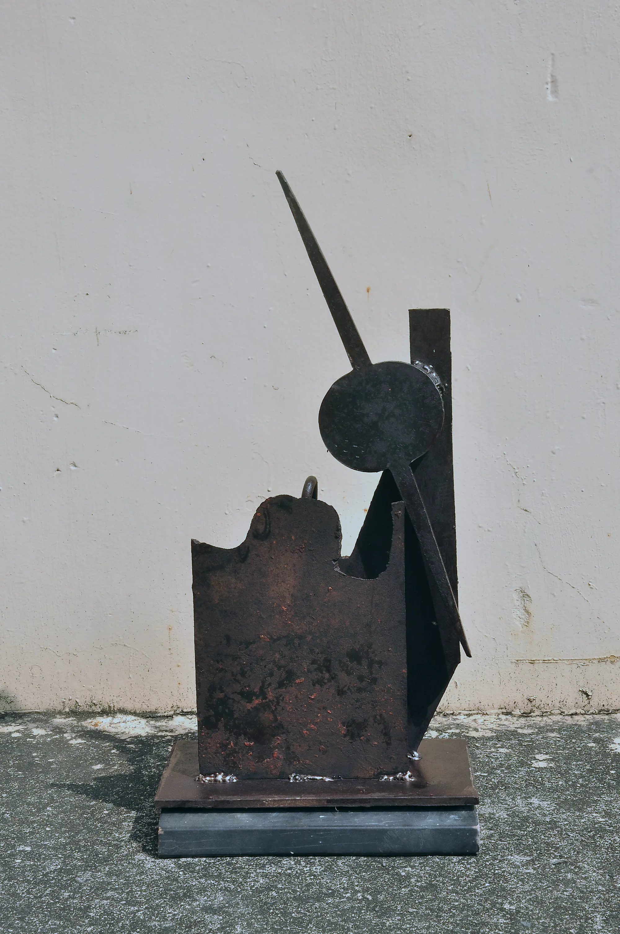 或許如此鐵雕創作是後工業革命的剩餘物,但是如此殘舊鏽般的剩餘鐵材,似乎也一樣在做一種存在消滅的後呻吟。