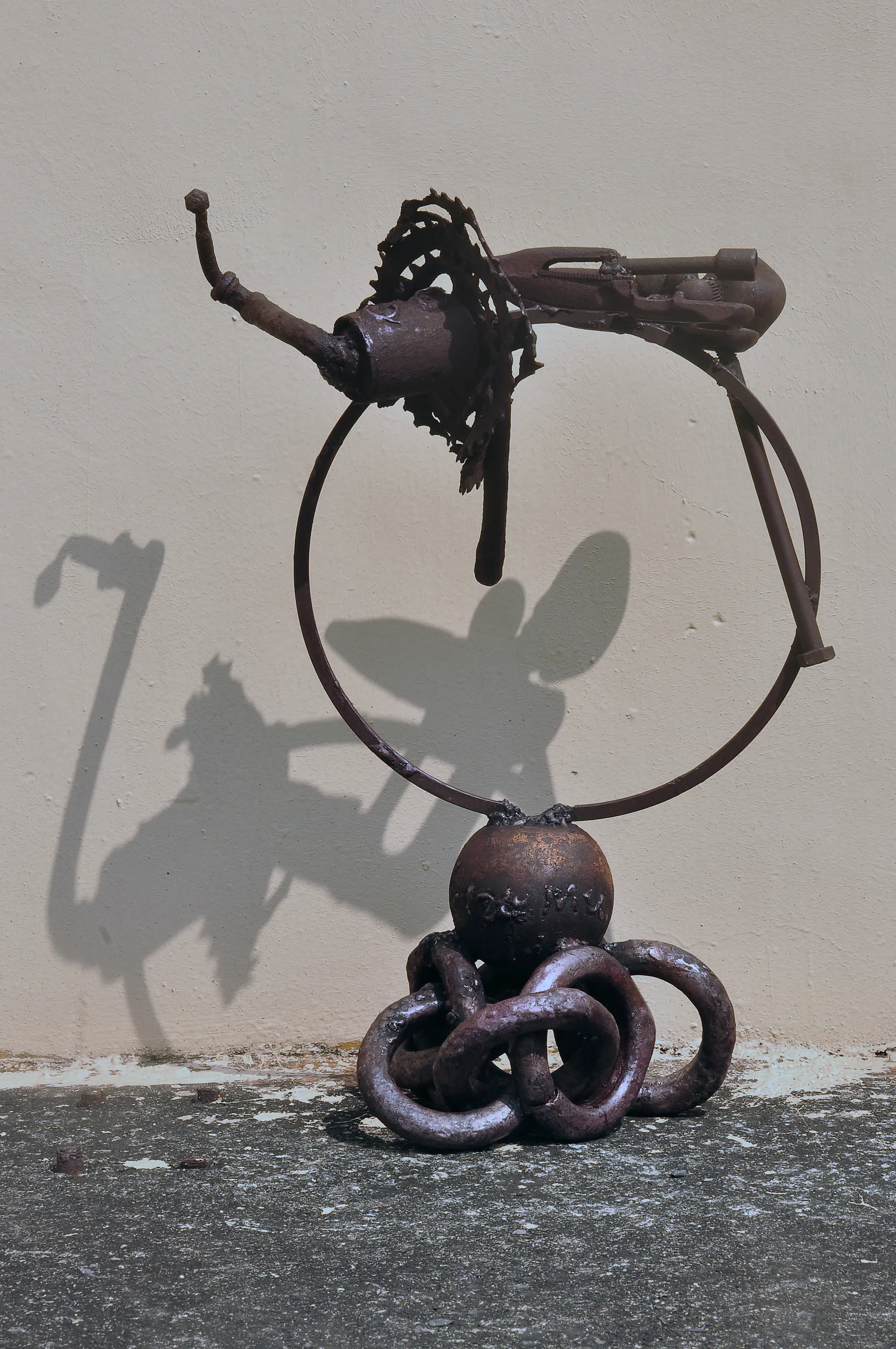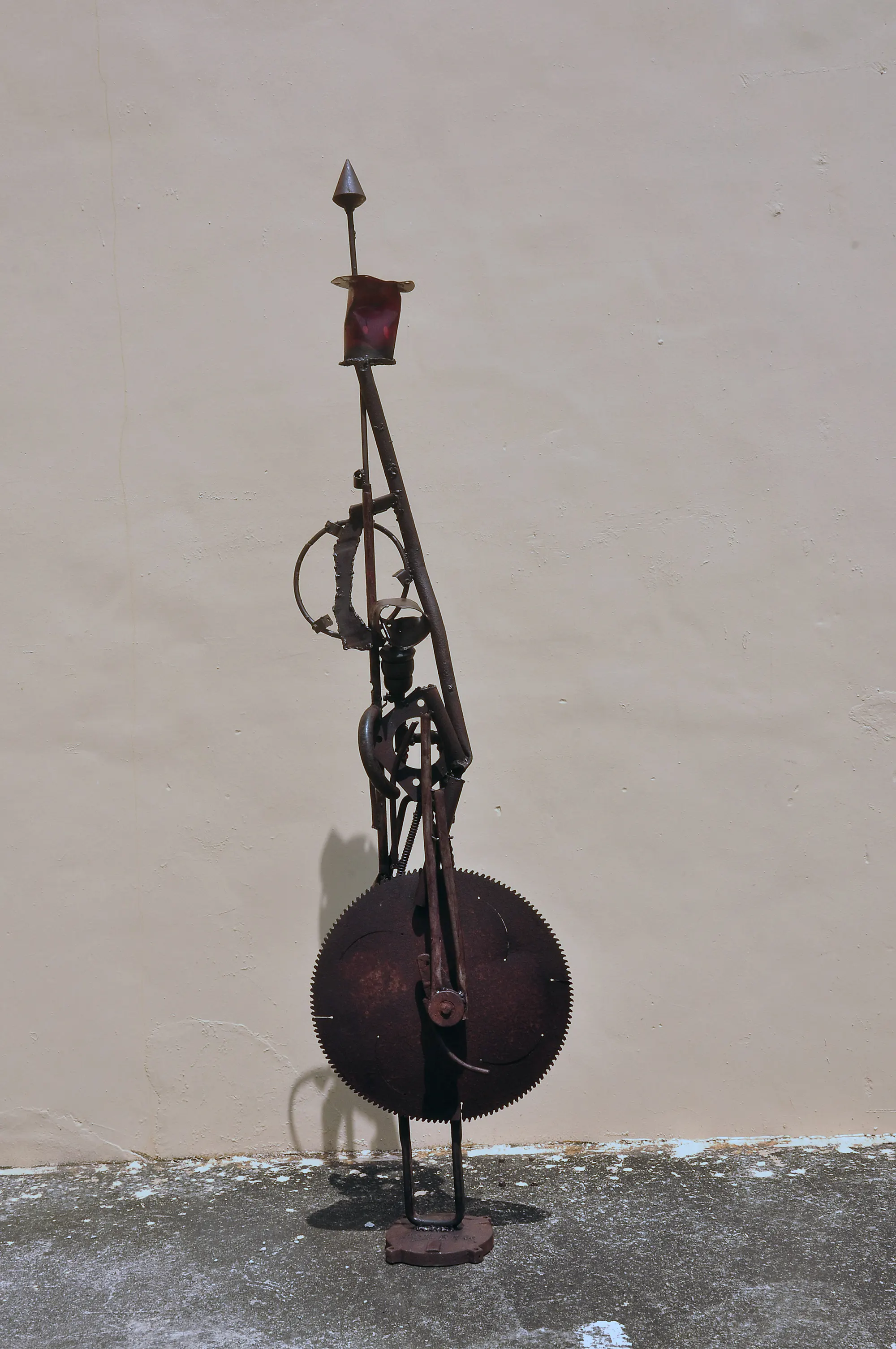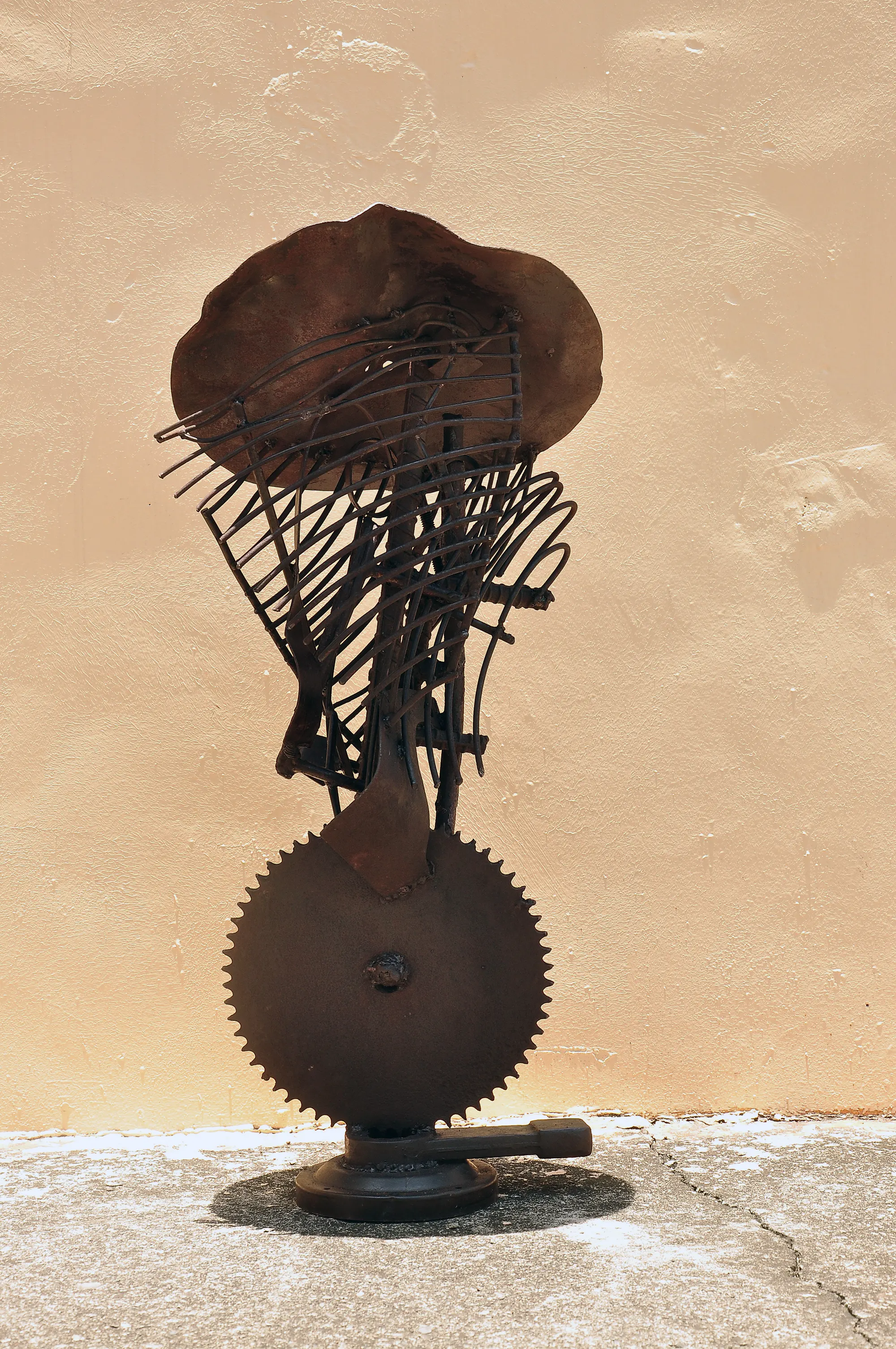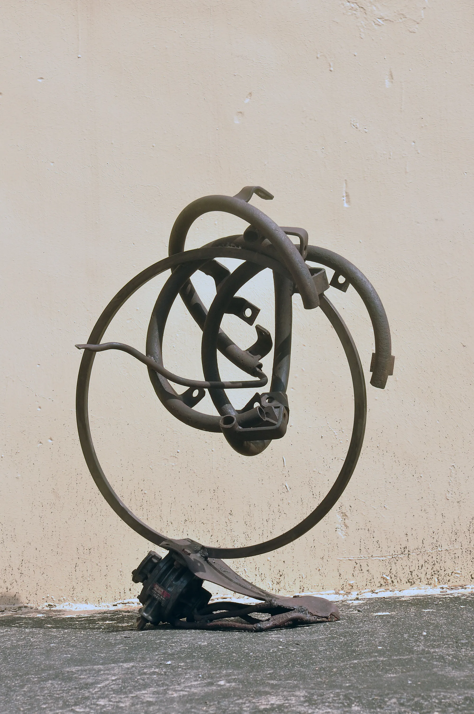 或許如此鐵雕創作是後工業革命的剩餘物,但是如此殘舊鏽般的剩餘鐵材,似乎也一樣在做一種存在消滅的後呻吟。