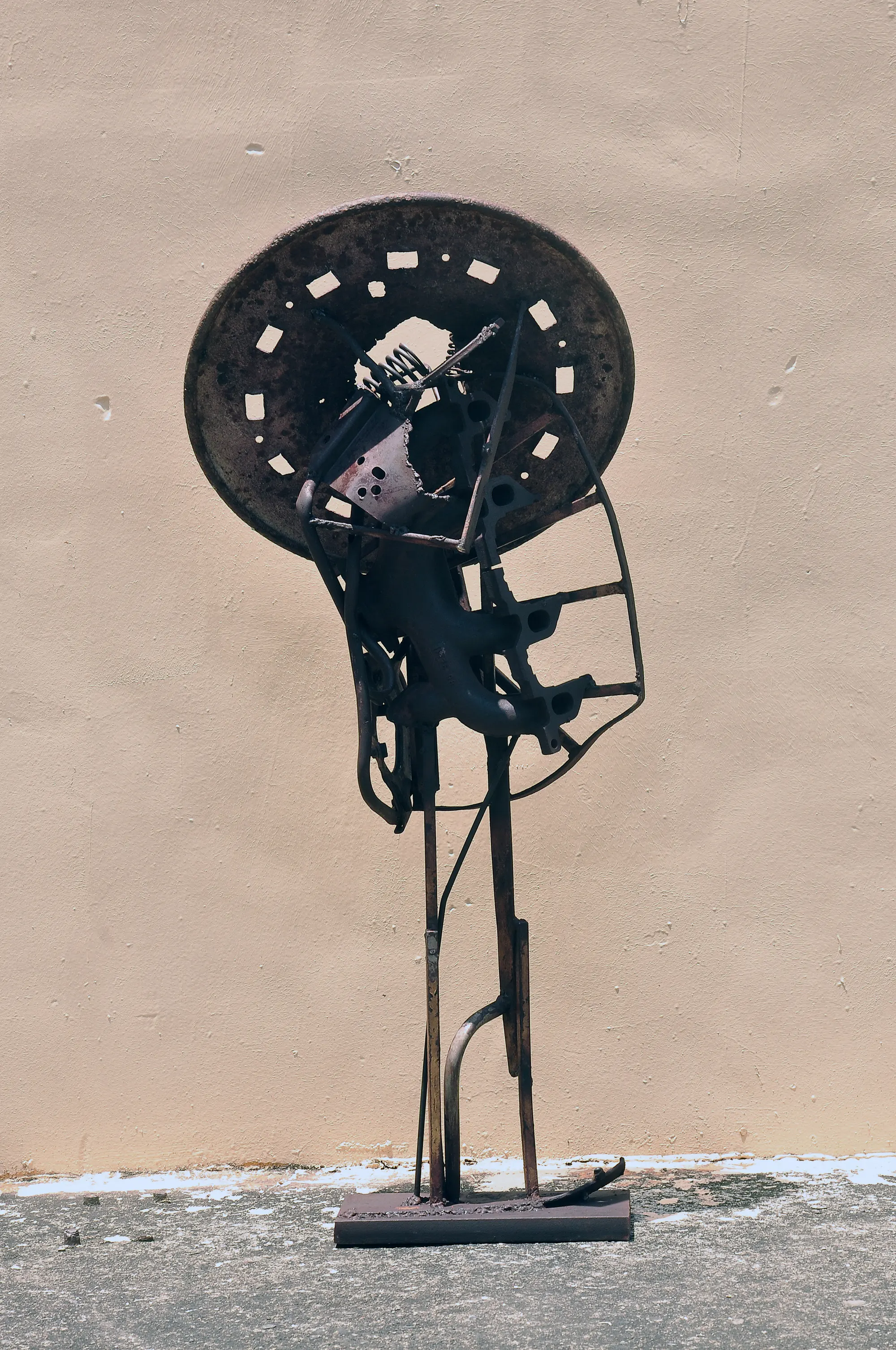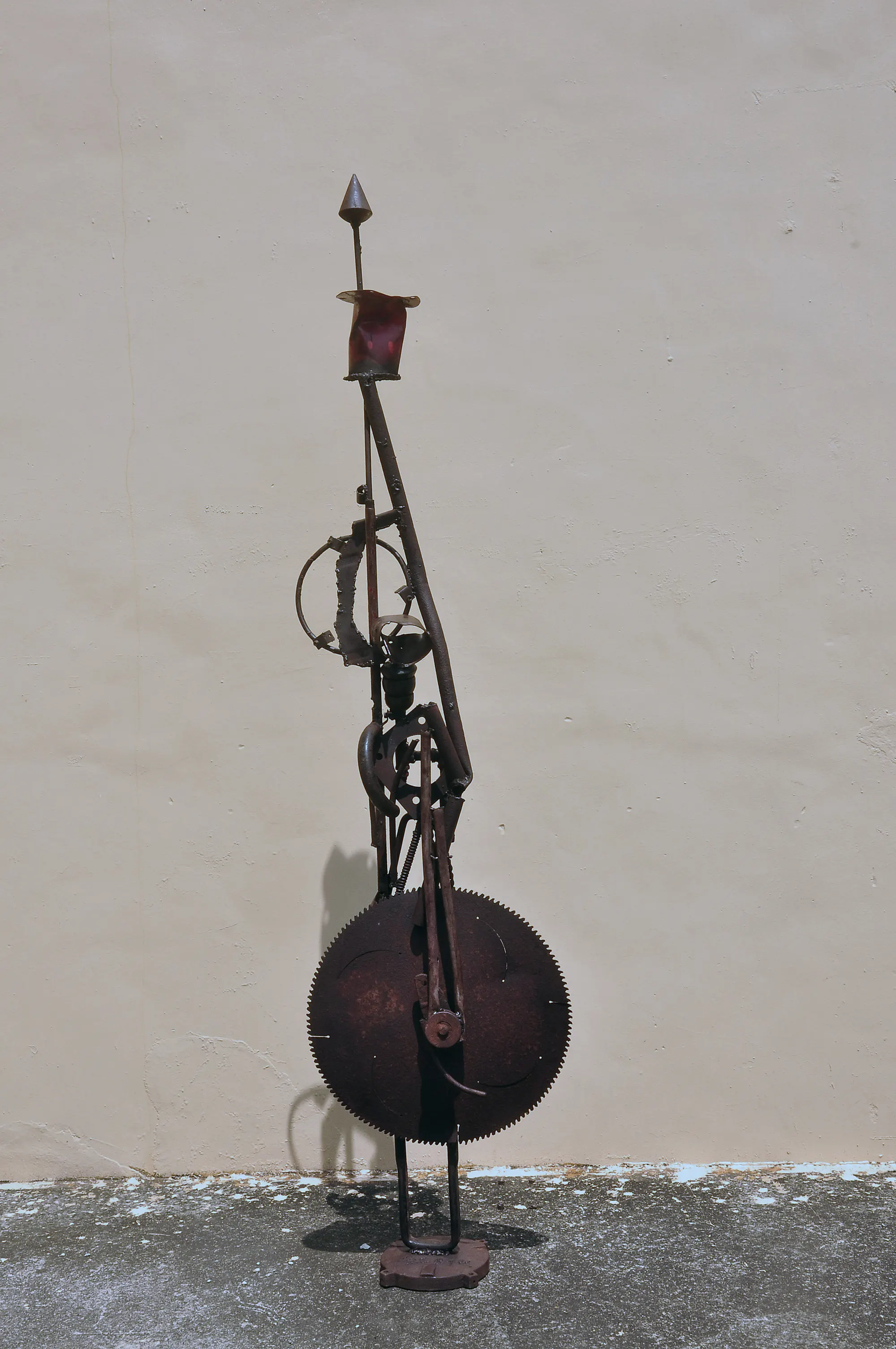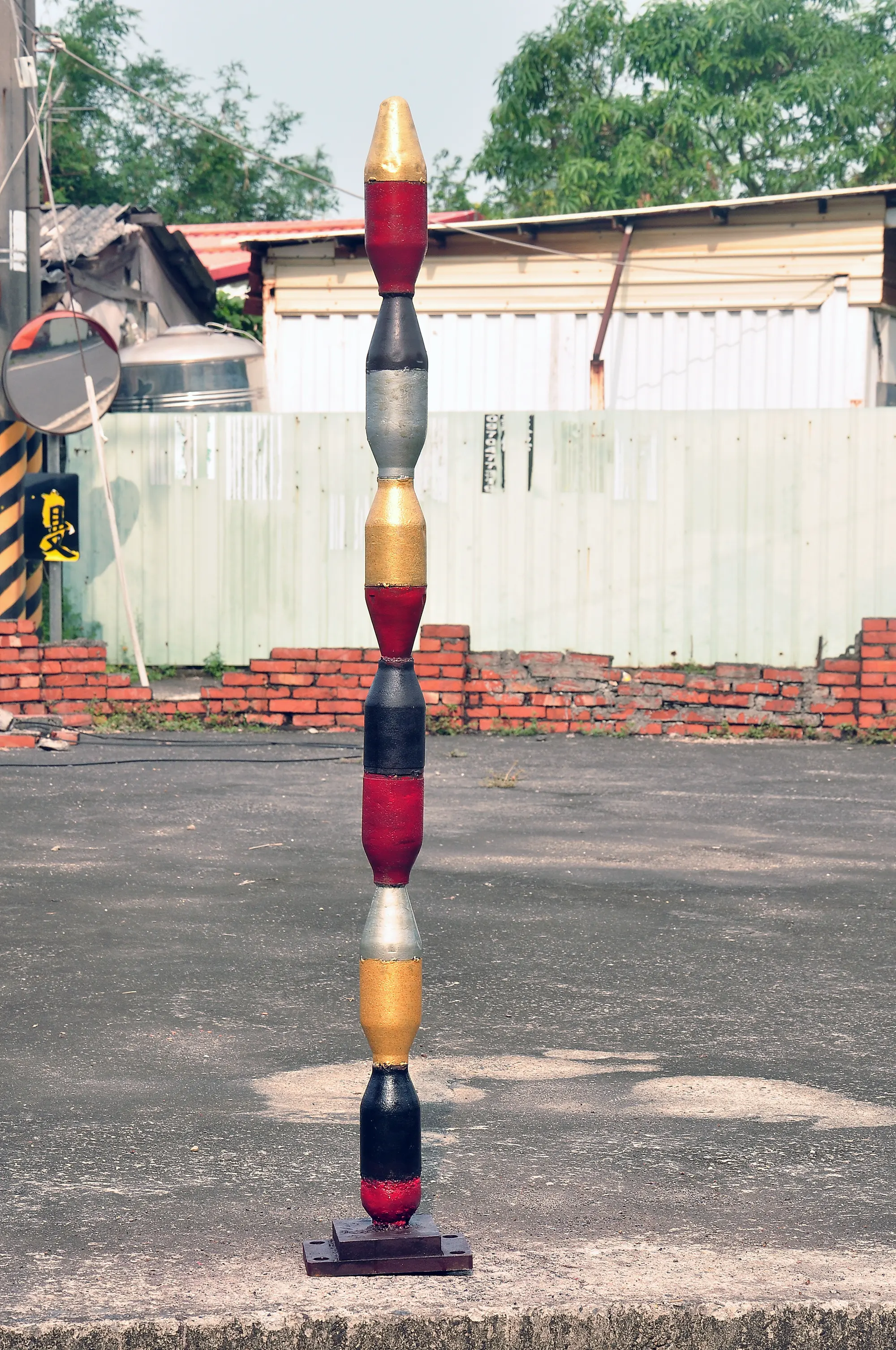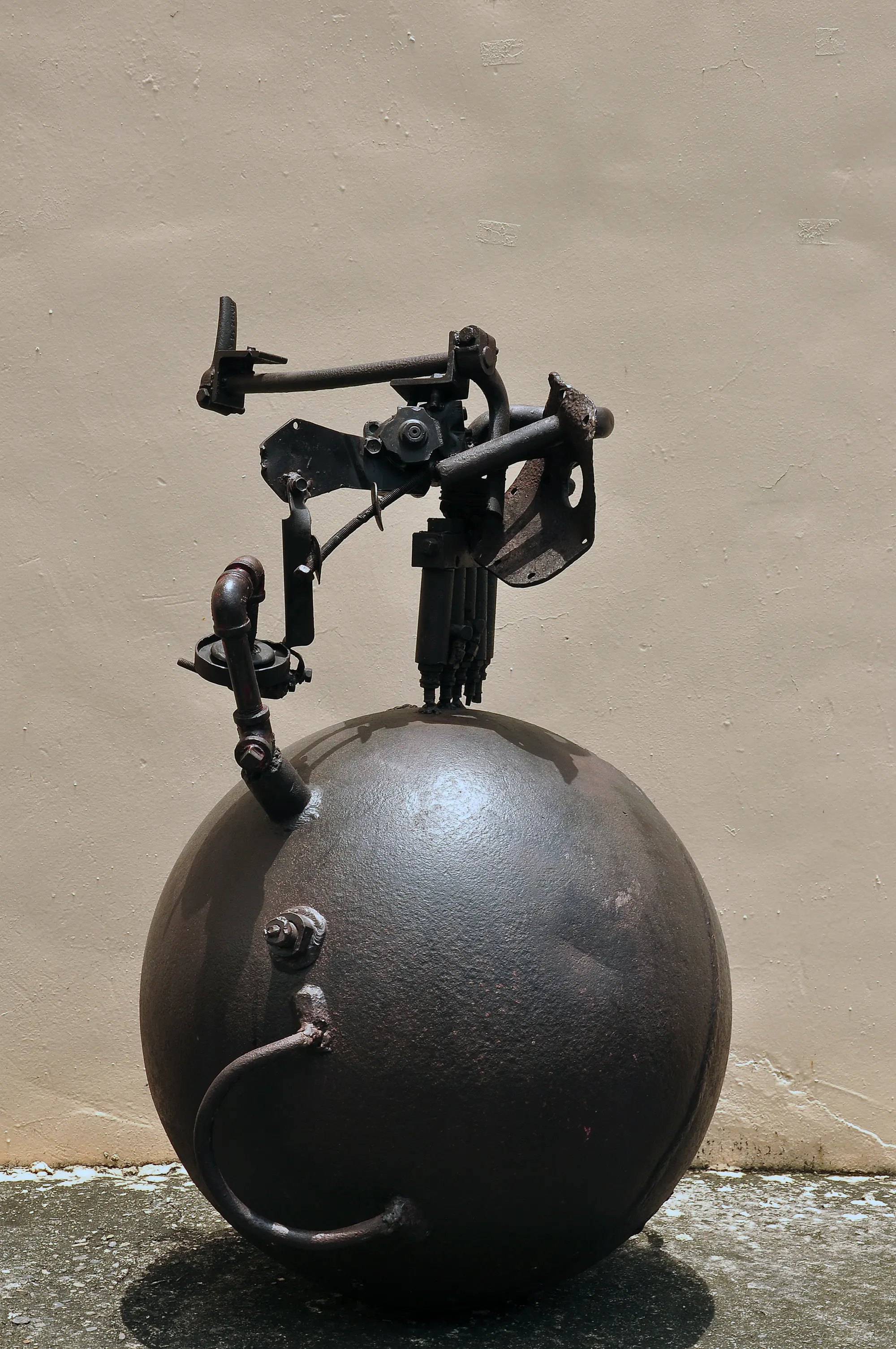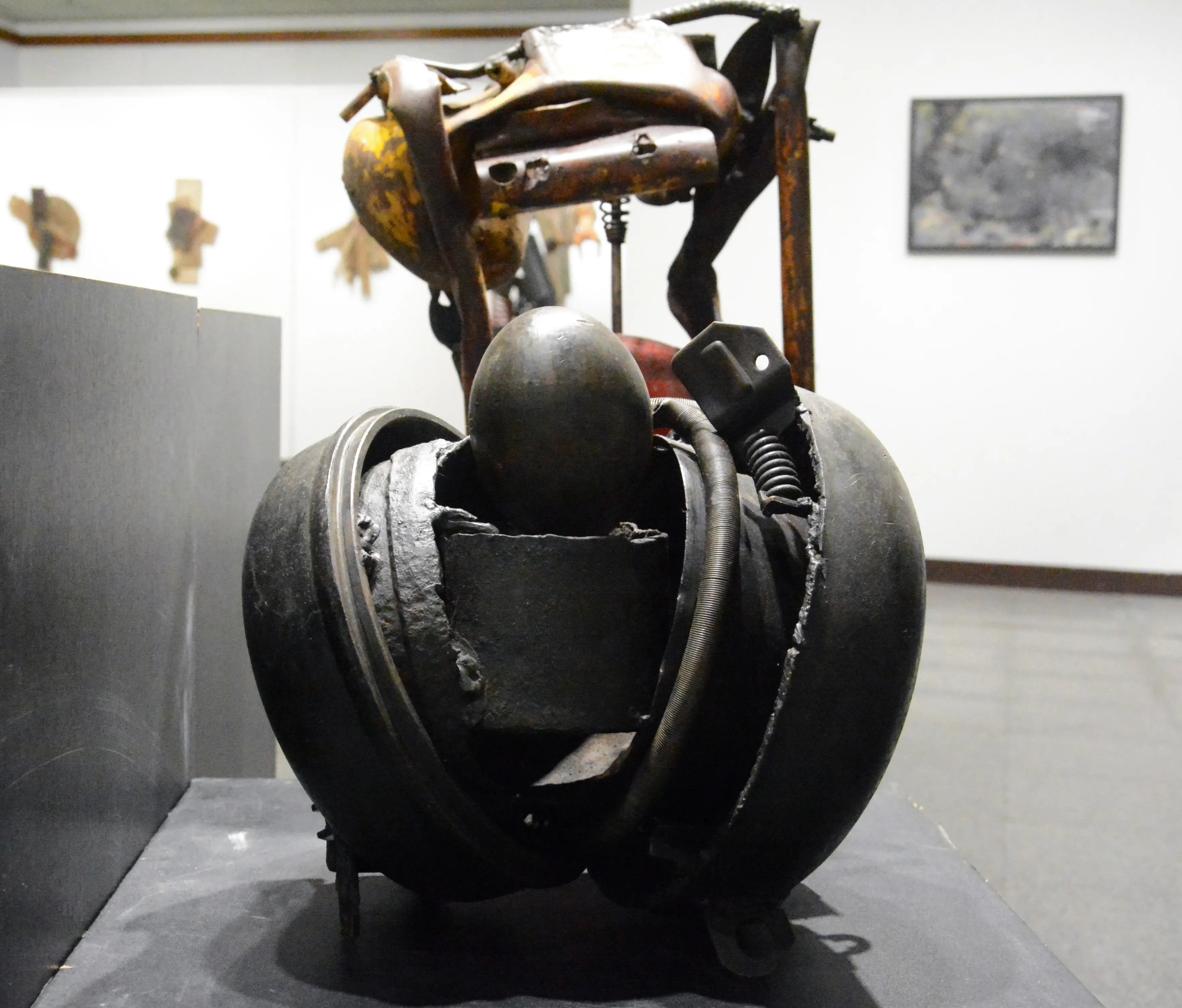 或許如此鐵雕創作是後工業革命的剩餘物,但是如此殘舊鏽般的剩餘鐵材,似乎也一樣在做一種存在消滅的後呻吟。