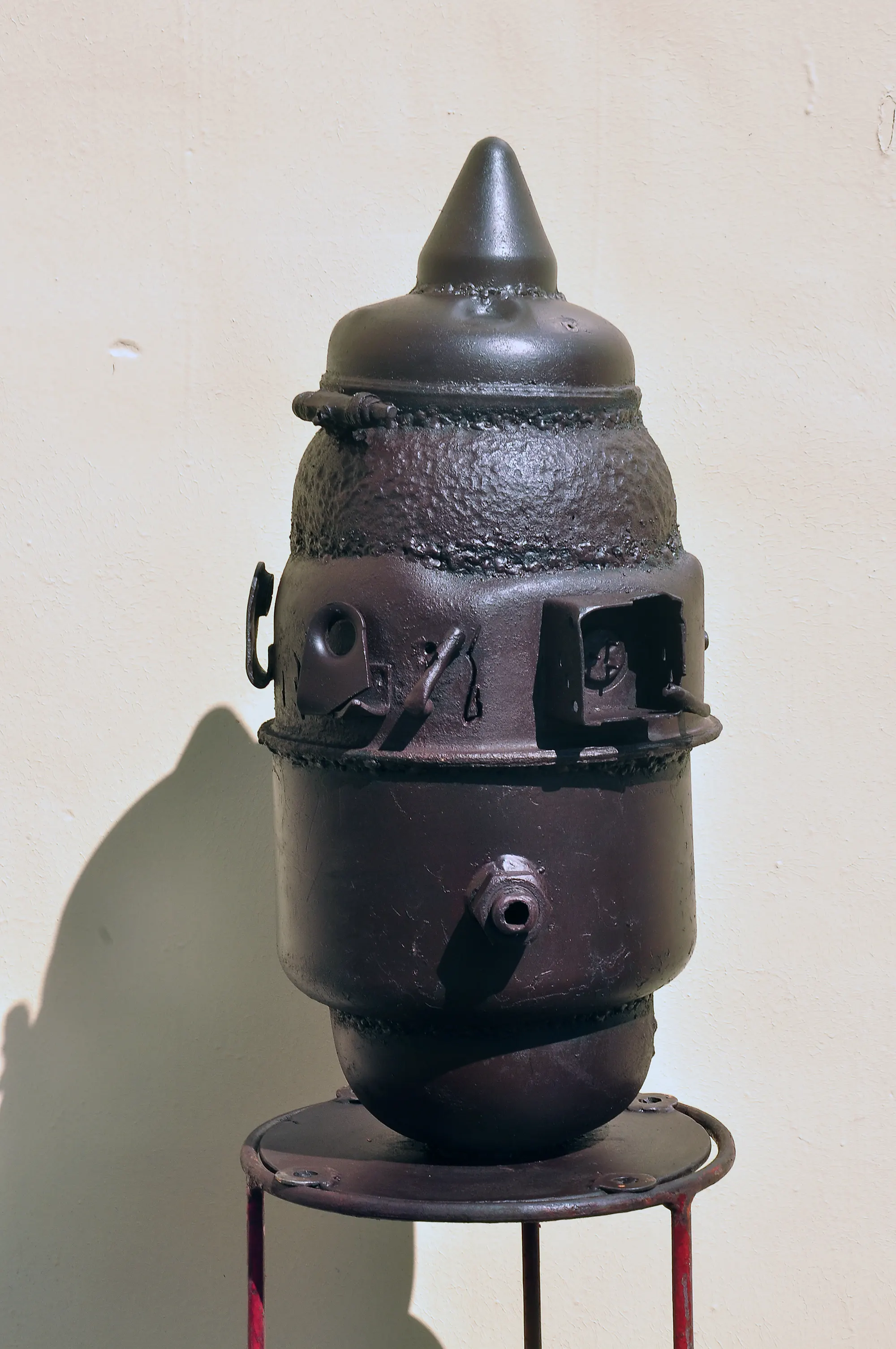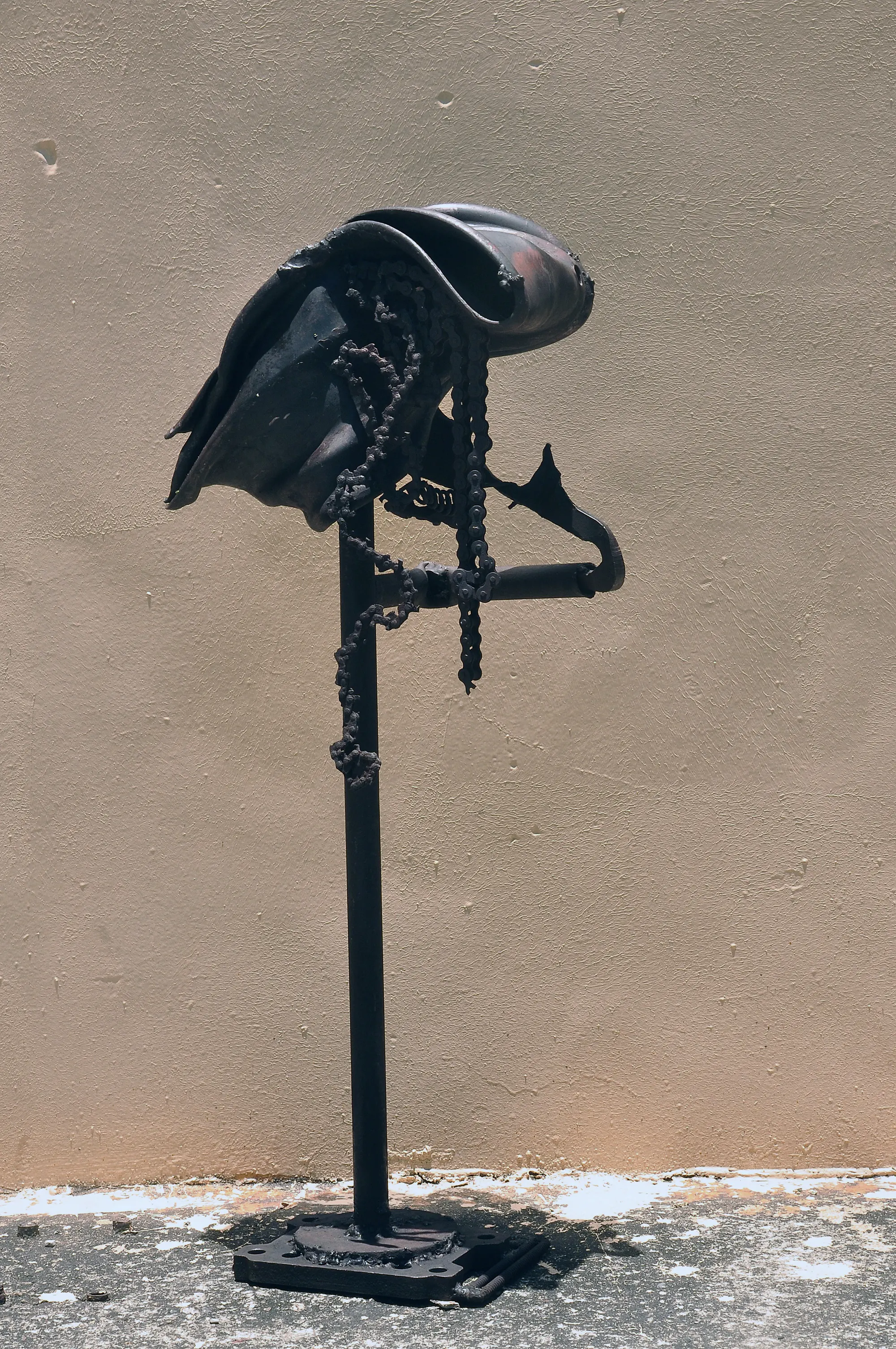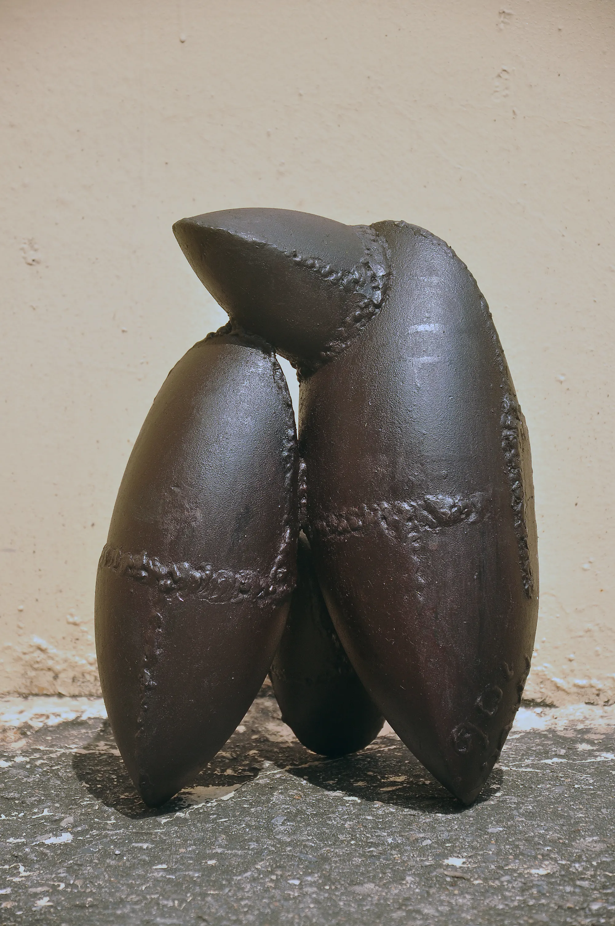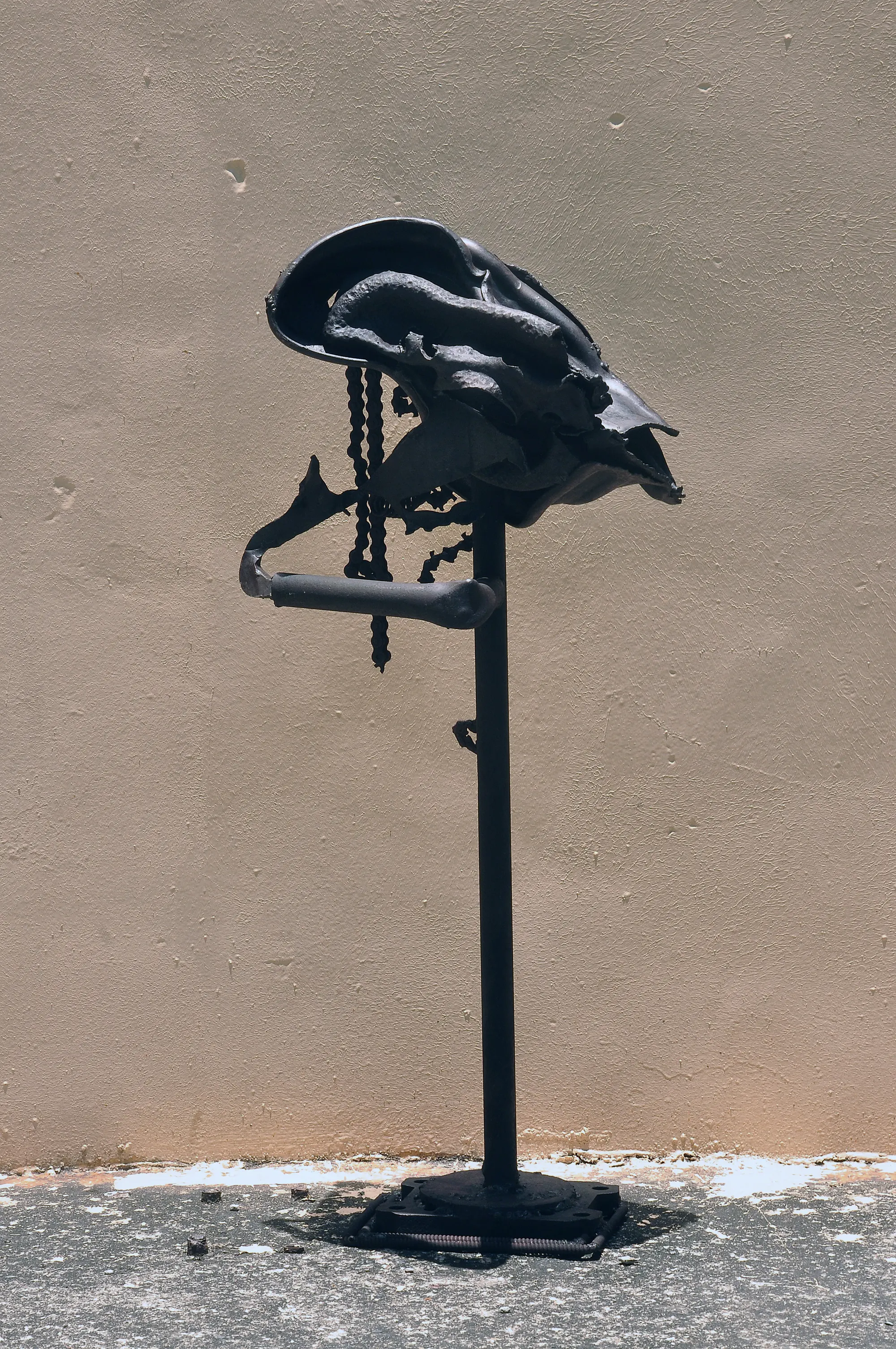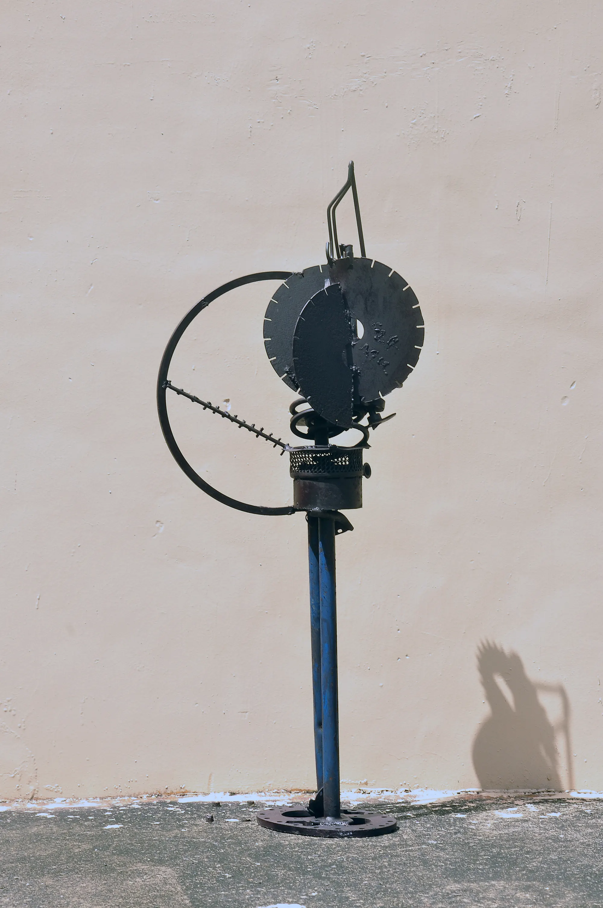 或許如此鐵雕創作是後工業革命的剩餘物,但是如此殘舊鏽般的剩餘鐵材,似乎也一樣在做一種存在消滅的後呻吟。