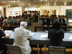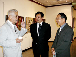 藝術中心正門 展場內作品陳列實景 展場內作品陳列實景 展場內作品陳列實景 展場內作品陳列實景 展場內作品陳列實景 展場內作品陳列實景 展場內作品陳列實景 展場內作品陳列實景 雄中藝術家與現場民眾對談 雄中藝術家與現場民眾對談 左起宋世雄老師、本校校長 雄中學生於展場參觀雄中展 開幕校長致詞 雄中藝術家與現場民眾對談