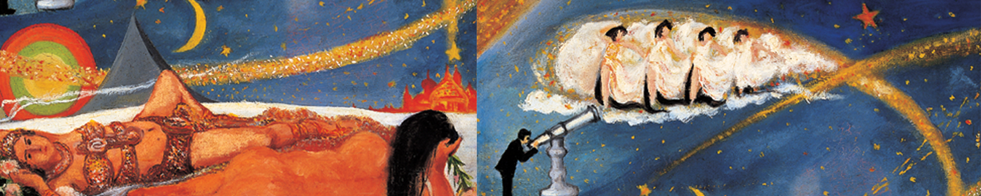 然而,莊老本期畫中所描寫的光,並非刻意追求西方科學性、理智性、分析性的光,而是希望表現屬於東方的溫和的、自然的、感知的、感情的、音樂的……等較為主觀而直覺性的「心光」。而此兩幅〔童話(觀音出世)〕則屬這類東方的光之描寫較具代表性之作品。