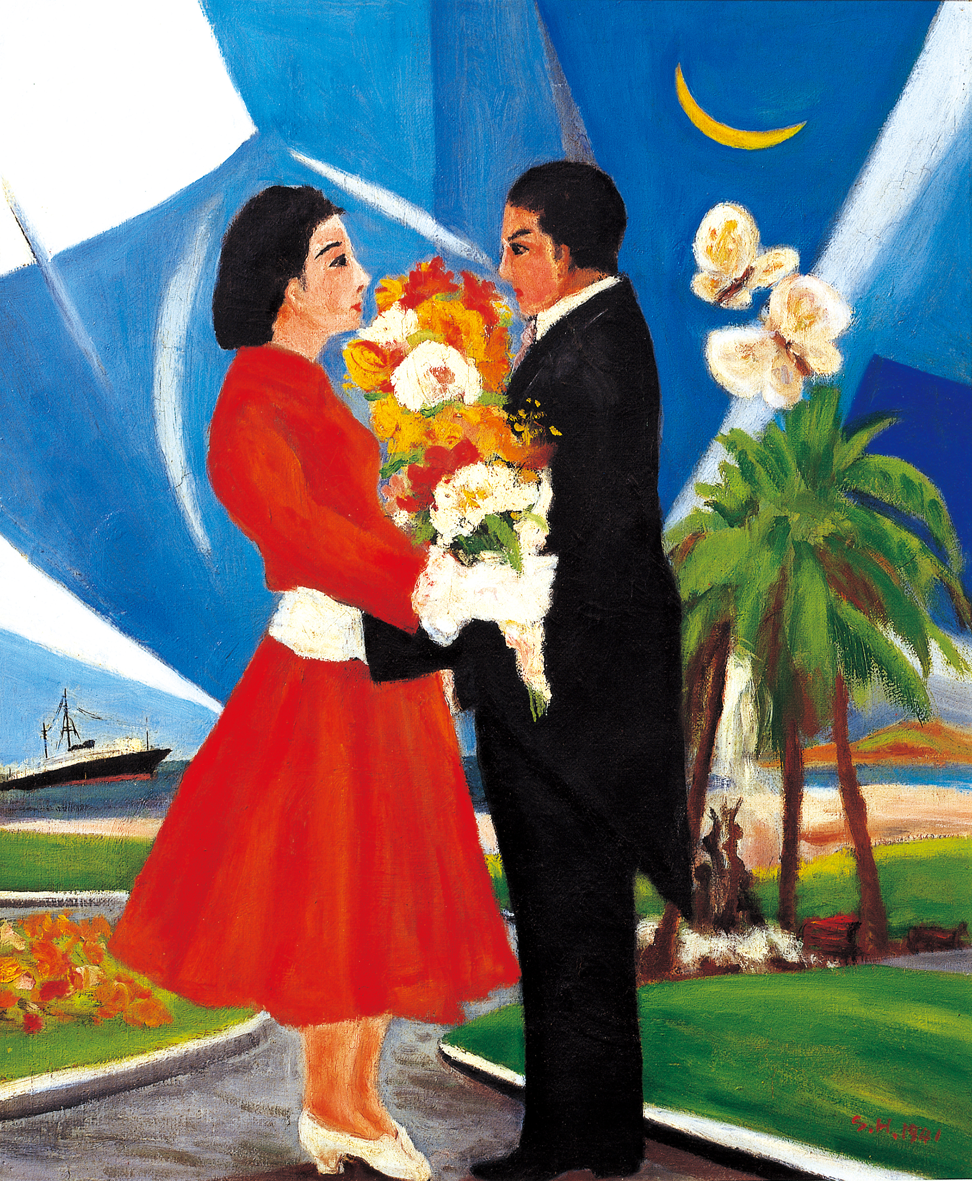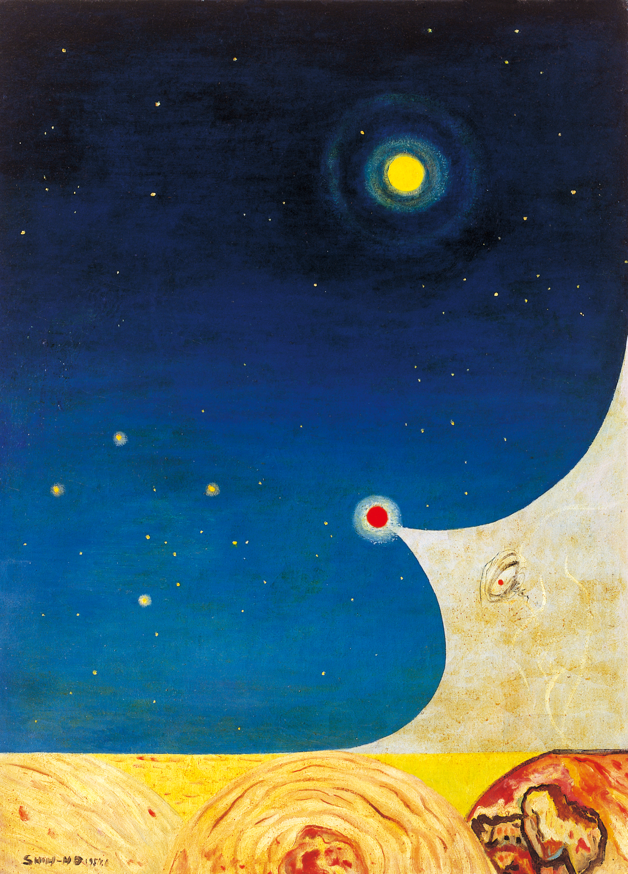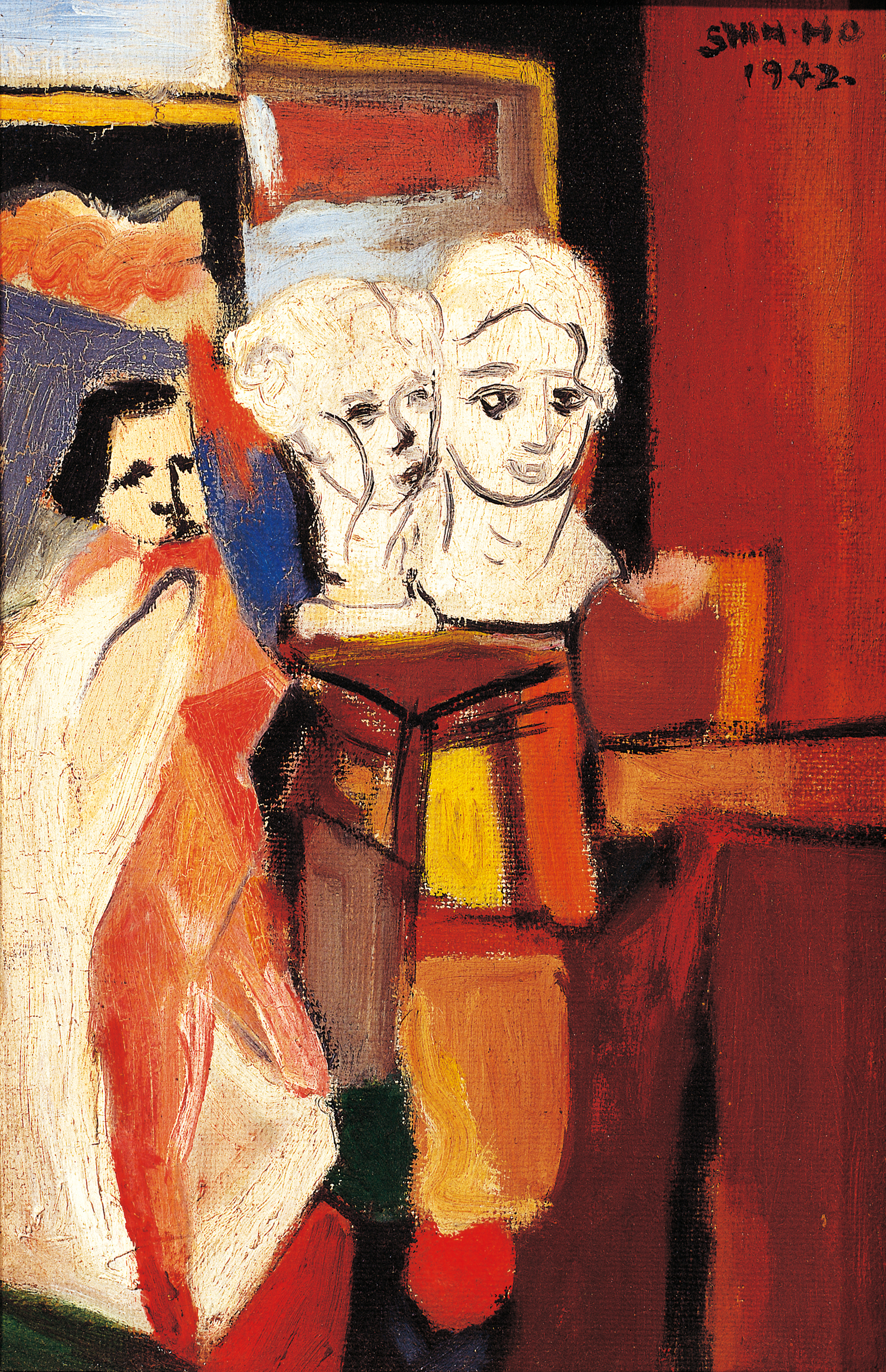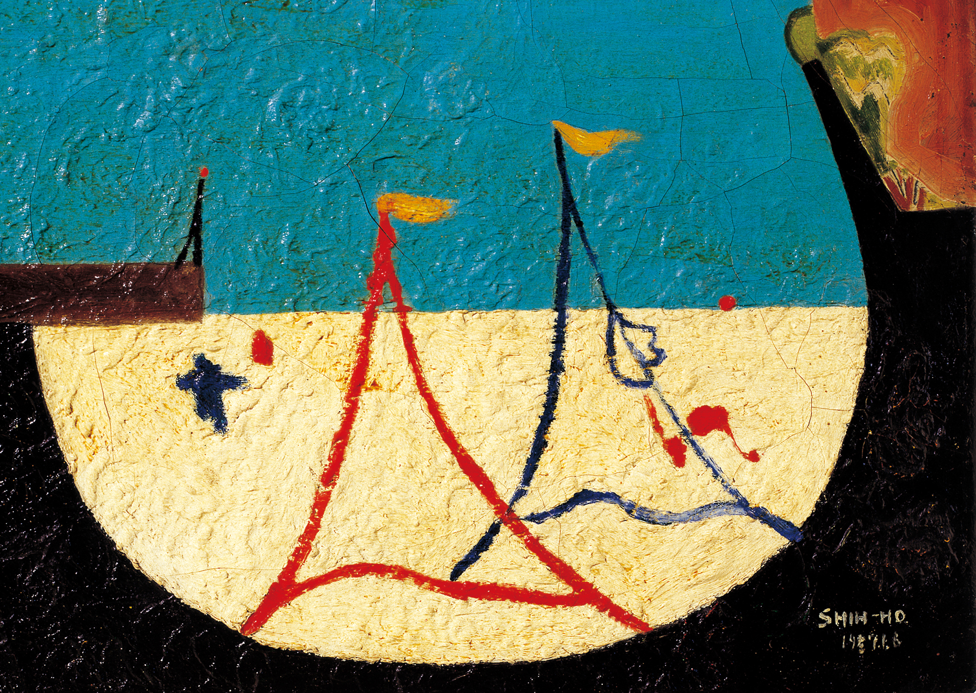 學生時代的父親除了不斷地鑽研二十世紀美術思潮,模寫巴黎派畫家尤特里羅(Maicrice Utrillo 1883~1955)、畢卡索的立體派作品之外,更浸淫在獨特的意象而製作現實與非現實融合的世界的俄國畫家-夏卡爾(Marc Chargall)的藝術領域中及米羅的純粹的超現實主義裡。