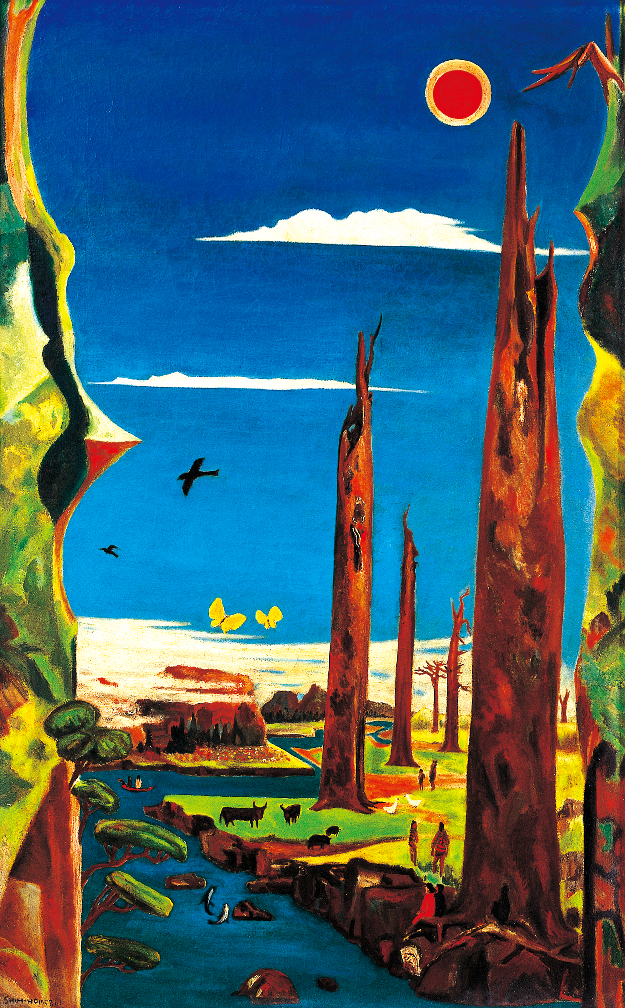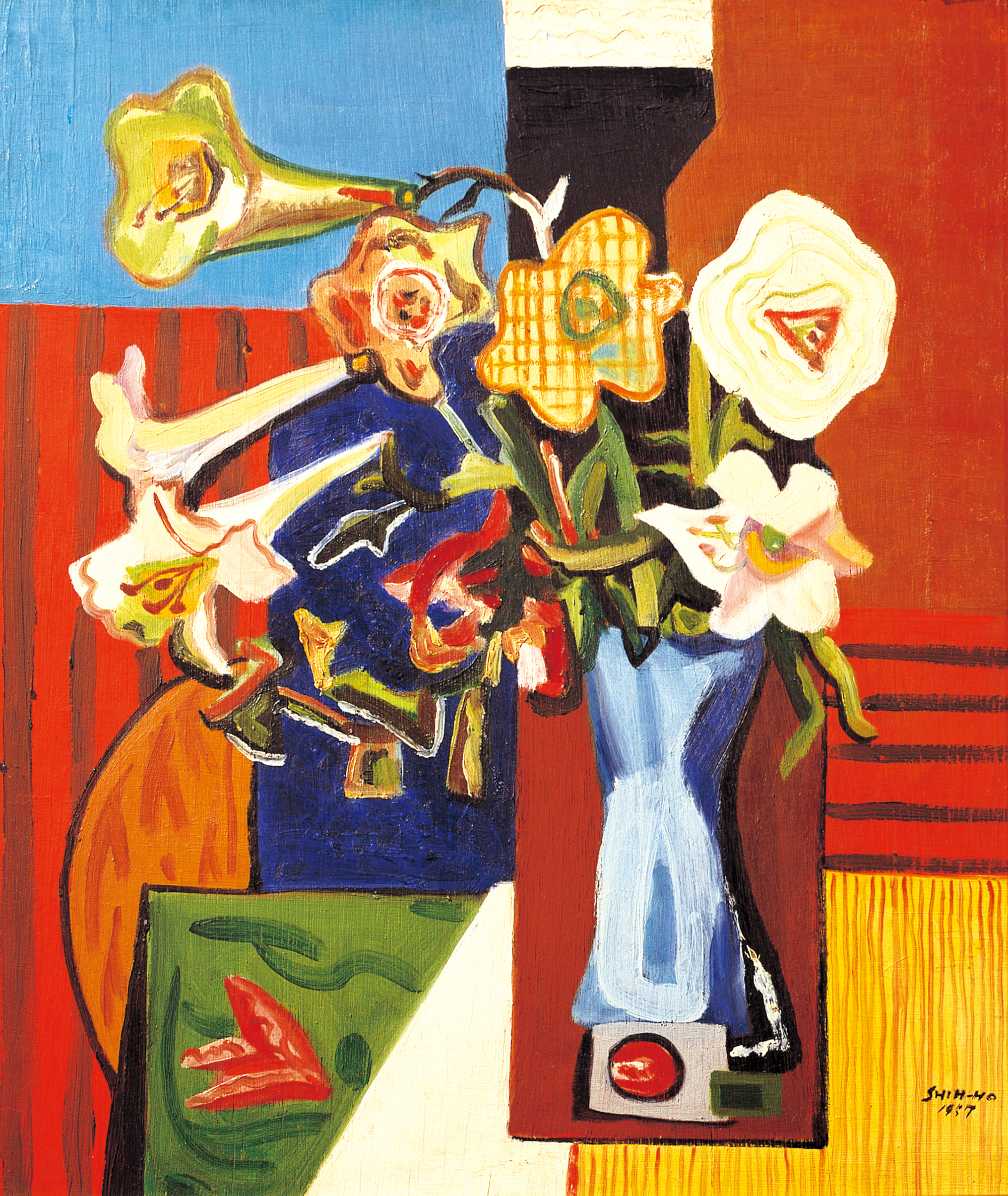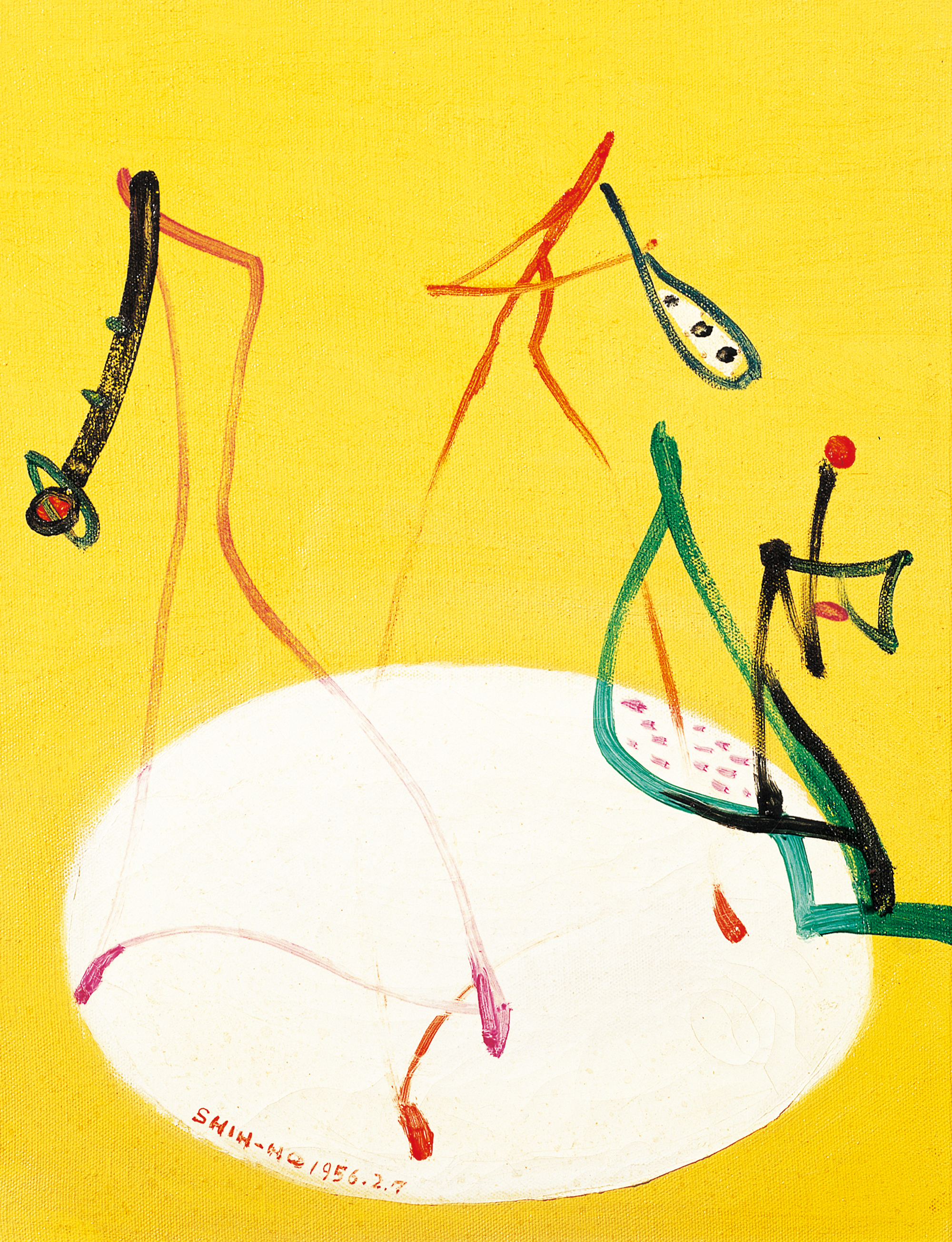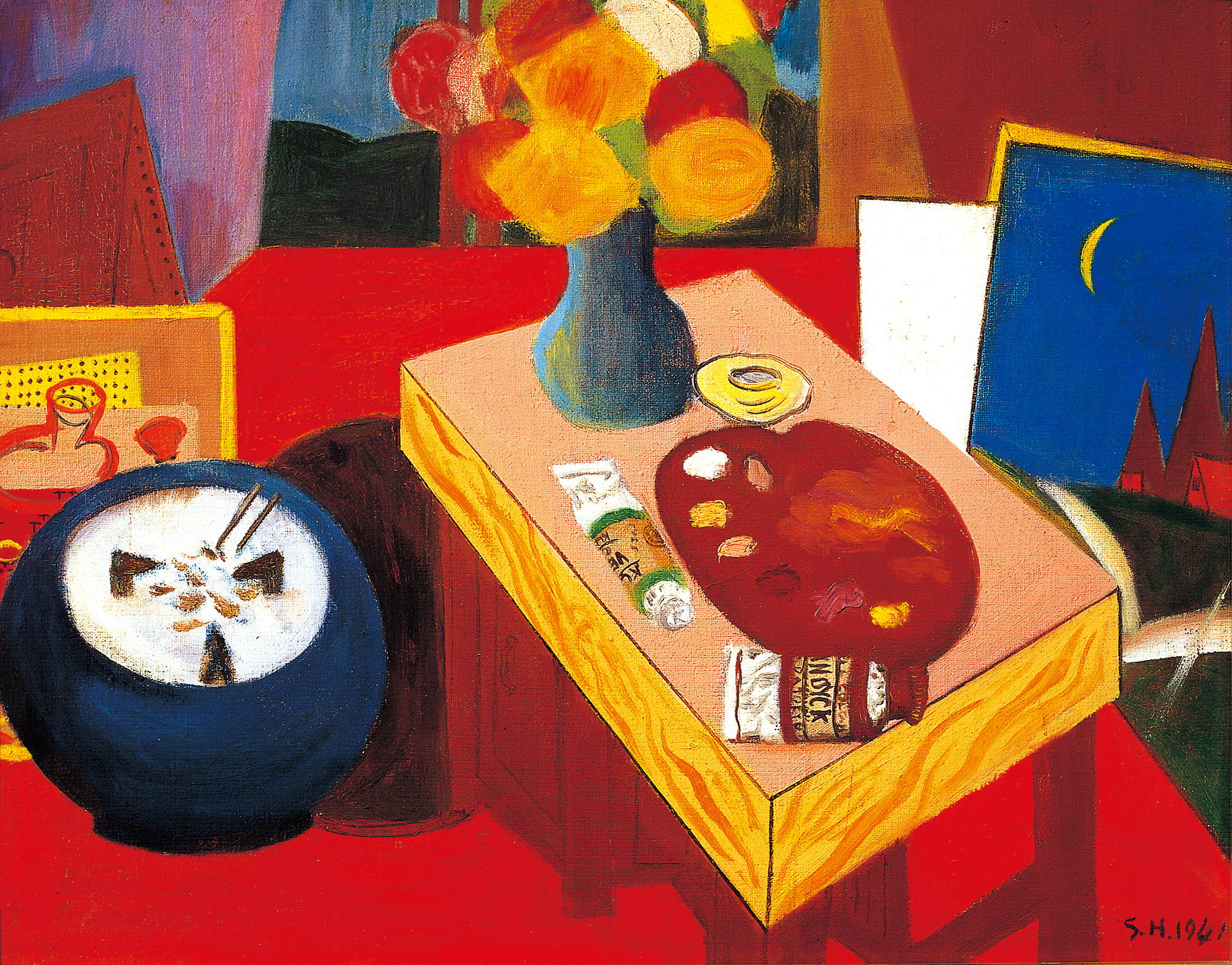 學生時代的父親除了不斷地鑽研二十世紀美術思潮,模寫巴黎派畫家尤特里羅(Maicrice Utrillo 1883~1955)、畢卡索的立體派作品之外,更浸淫在獨特的意象而製作現實與非現實融合的世界的俄國畫家-夏卡爾(Marc Chargall)的藝術領域中及米羅的純粹的超現實主義裡。