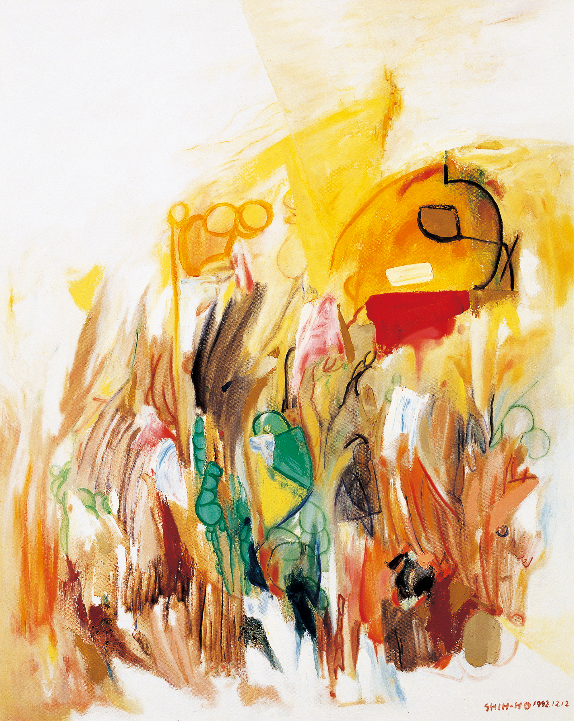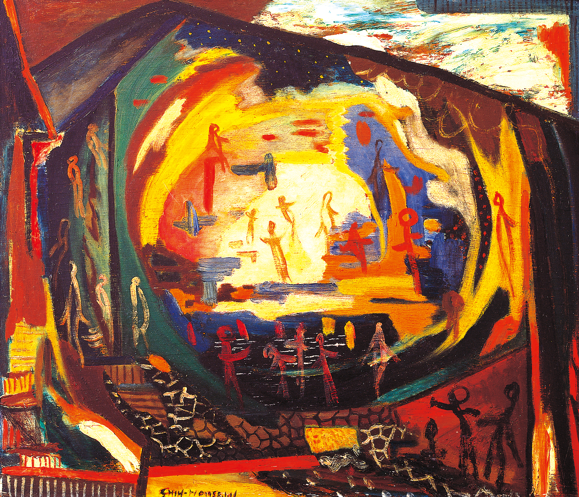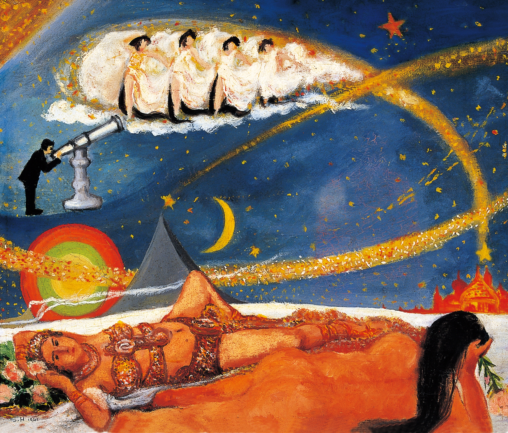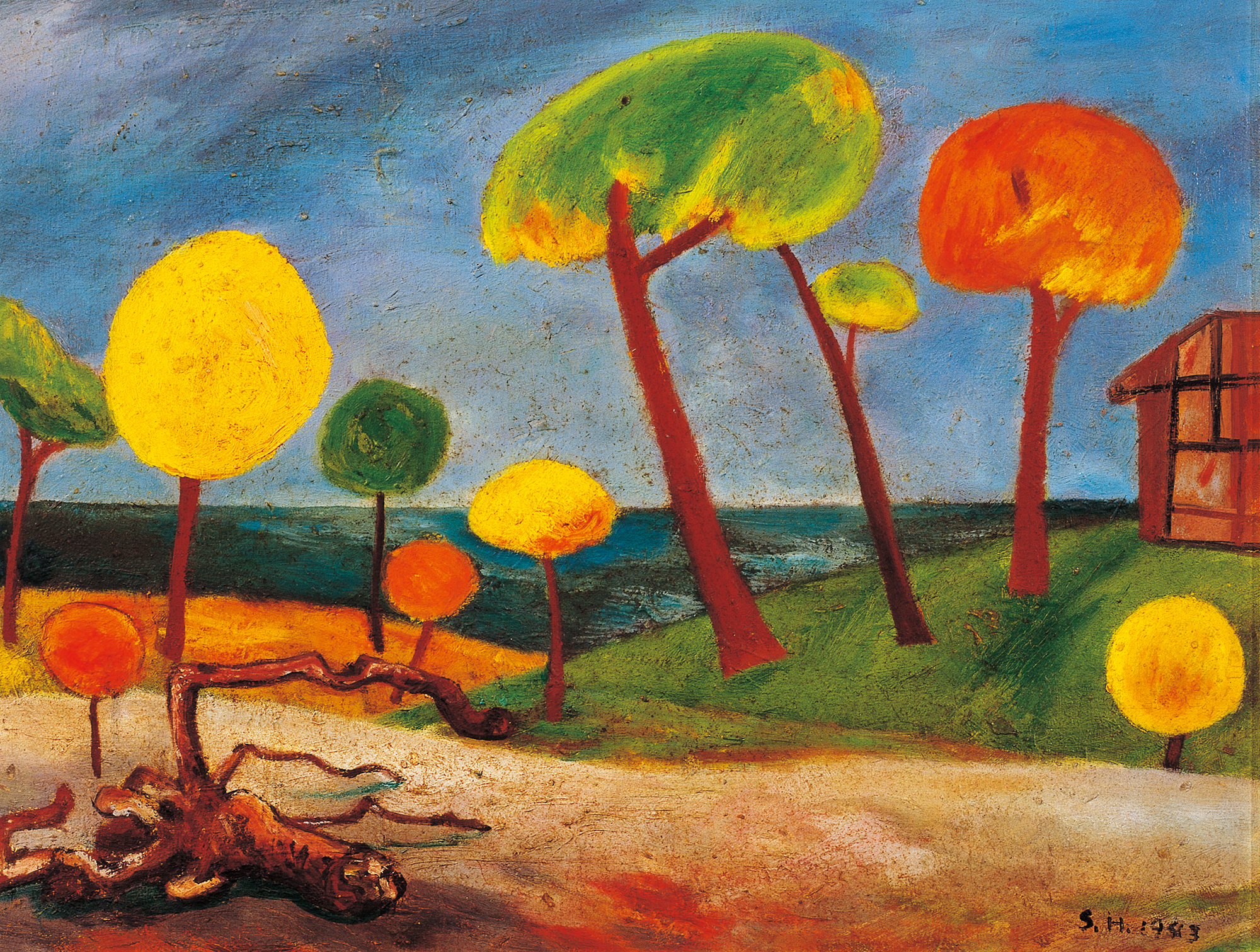 學生時代的父親除了不斷地鑽研二十世紀美術思潮,模寫巴黎派畫家尤特里羅(Maicrice Utrillo 1883~1955)、畢卡索的立體派作品之外,更浸淫在獨特的意象而製作現實與非現實融合的世界的俄國畫家-夏卡爾(Marc Chargall)的藝術領域中及米羅的純粹的超現實主義裡。