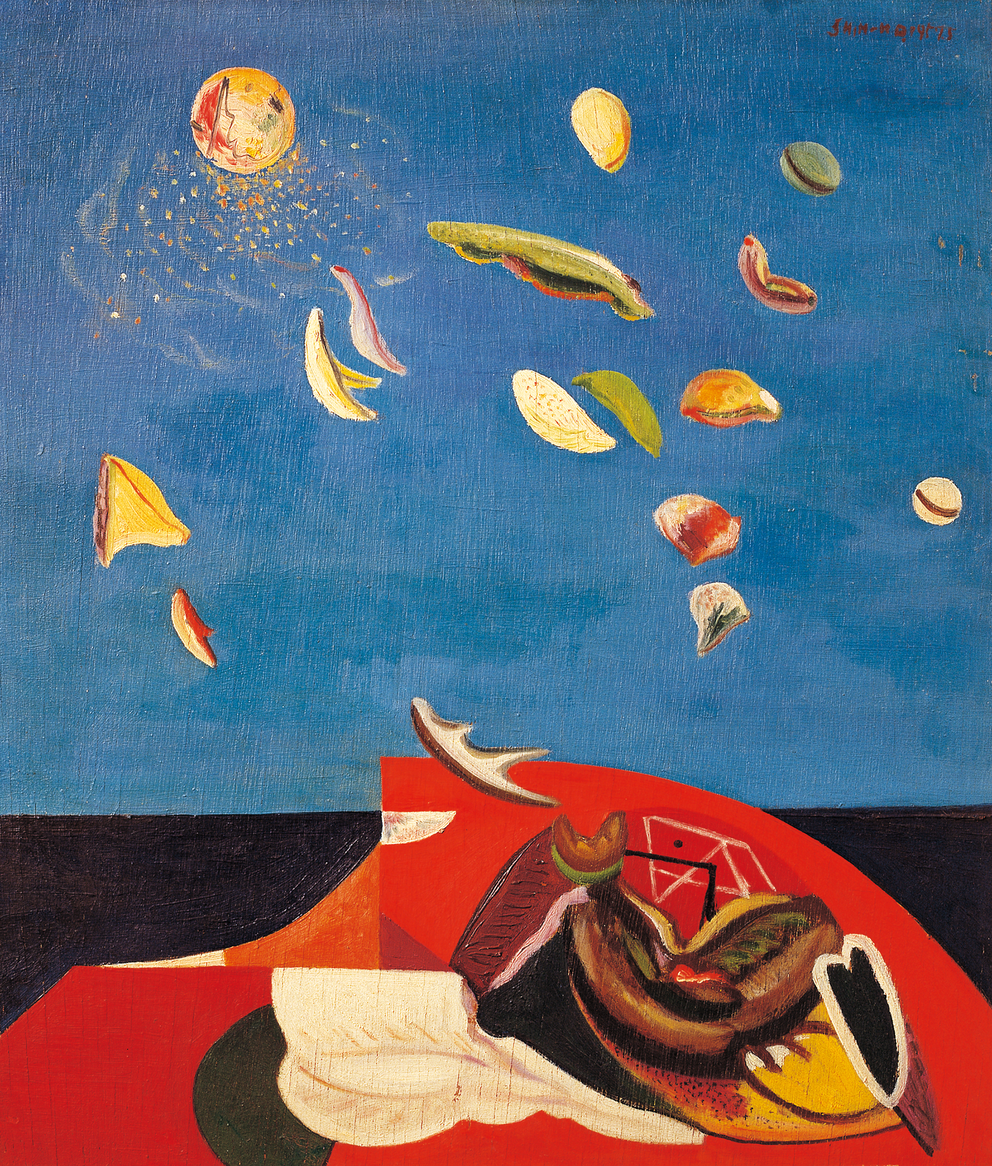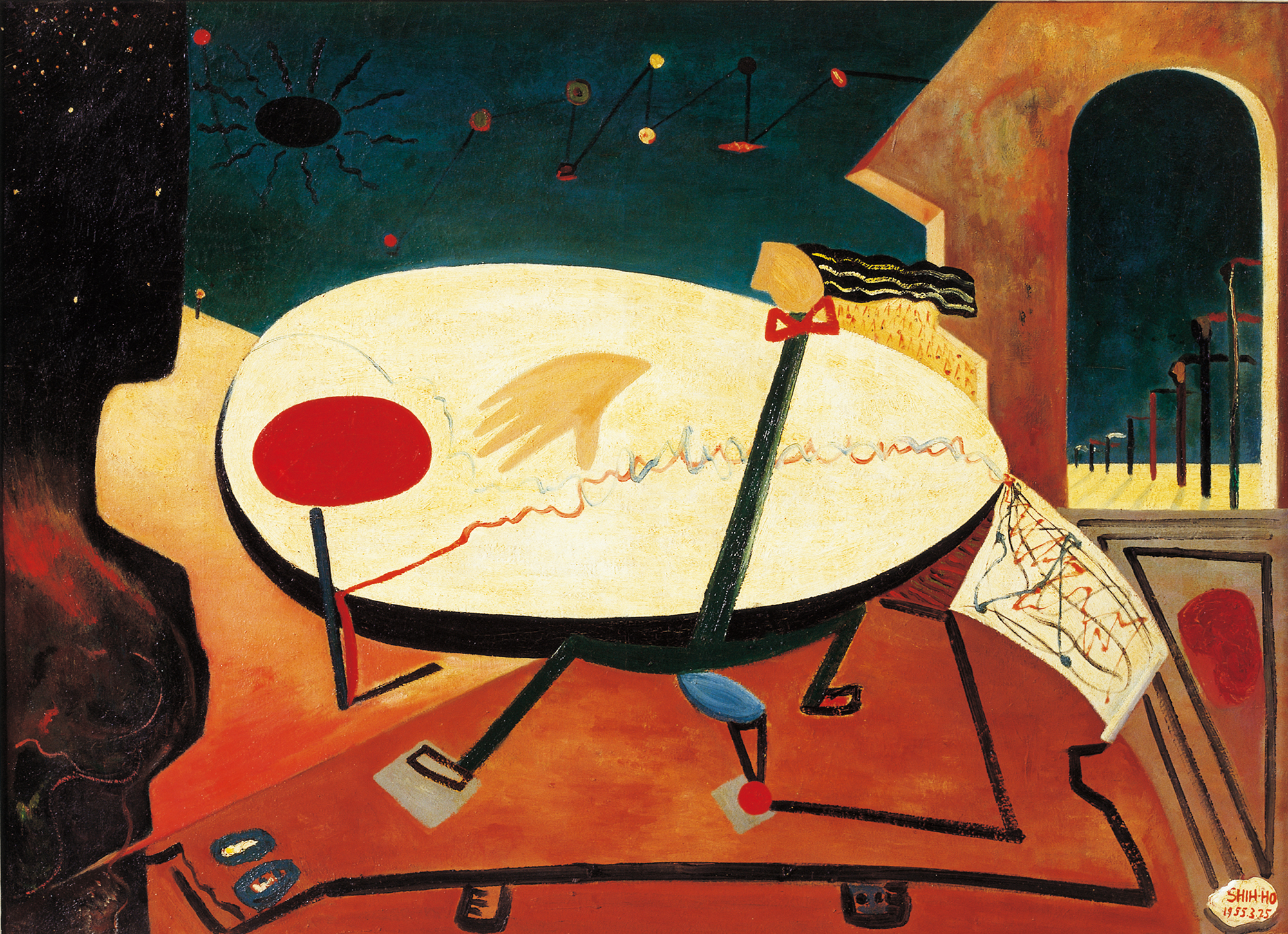 「所謂超現實主義,是否定了一切舊巢(窠)臼的現實主義,並且是接近『真實』(Realite)的一種要求,雖是現實主義(Realisme),卻含蘊『超』(SUR)的真正意義。絕不脫離真實或寫實主義的真實性,也不徒有嬉戲於自我世界的夢境,只是與寫實主義所追究真實的方法不一樣而已。寫實主義是肯定的直接從正面對著物象的探究,可是超現實主義是否定的,從裡面去探究,然其追究真實的目的是同樣的。因之,超現實派作家是注重脫離現實的潛意識世界,因以畫出具有可能性的幻象,這一種幻象,實際上比現實還要更真實,比起視覺世界的再現也更有意義與價值。講究超現實主義所追究的『真實』,他們企望從現實的一切束縛逃出,捨棄了真實地思考的自然物,捨棄了他們正確思索的善,拋擲禱於神的宗教,只追求繪畫的『真實』。那些在作者心裡不能改動的純真的現實,沒法在現實社會裡求得,於是只有從夢裡去實現。這就是一種超現實的東西了。」(註13)