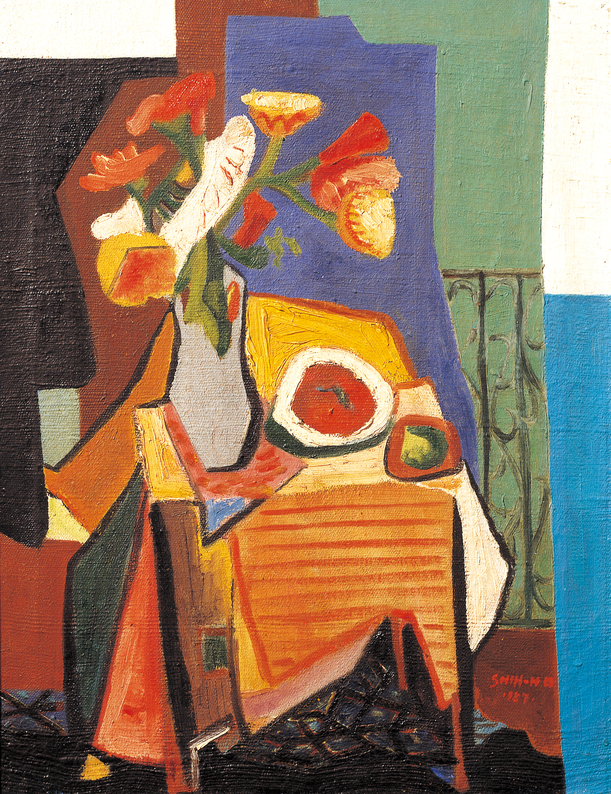年屆80的莊世和老先生,早年東渡日本入川端畫學校研習日本畫(1938~1941),繼而進入東京工藝美術學校純粹美術部繪畫科(普通科、研究科)研究廿世紀美術理論和創作(1940~1945),為屏東縣地區日治時期僅有的兩位留日學習西洋畫的前輩畫家之一(註1),也是日治時期台籍藝術家裡面,極為少數探研西洋廿世紀現代畫風的前輩畫家之一(當時台籍洋畫家多屬外光派或所謂類印象派畫風,此外也有少數野獸派畫風)。1950年代初,正值台灣新興藝術運動之萌芽期,莊氏毅然調職北部服務,積極參與何鐵華的廿世紀社之相關活動,為台灣早期從事現代畫創作以及推動現代藝術的先驅人物之一。1957年他在潮州發起創立屏東縣第一個美術團體──綠舍美術研究會,並主導該畫會長達四十多年,對於早期屏東縣美術風氣之帶動,績效頗為可觀。在屏東縣美術發展史中,不但輩份甚高,而且不論在個人創作之造詣、美術風氣之推廣、美術人才之培育等方面,都有很高的成就和貢獻。本文擬就莊氏繪畫創作理念及其畫風發展之關係進行析探。