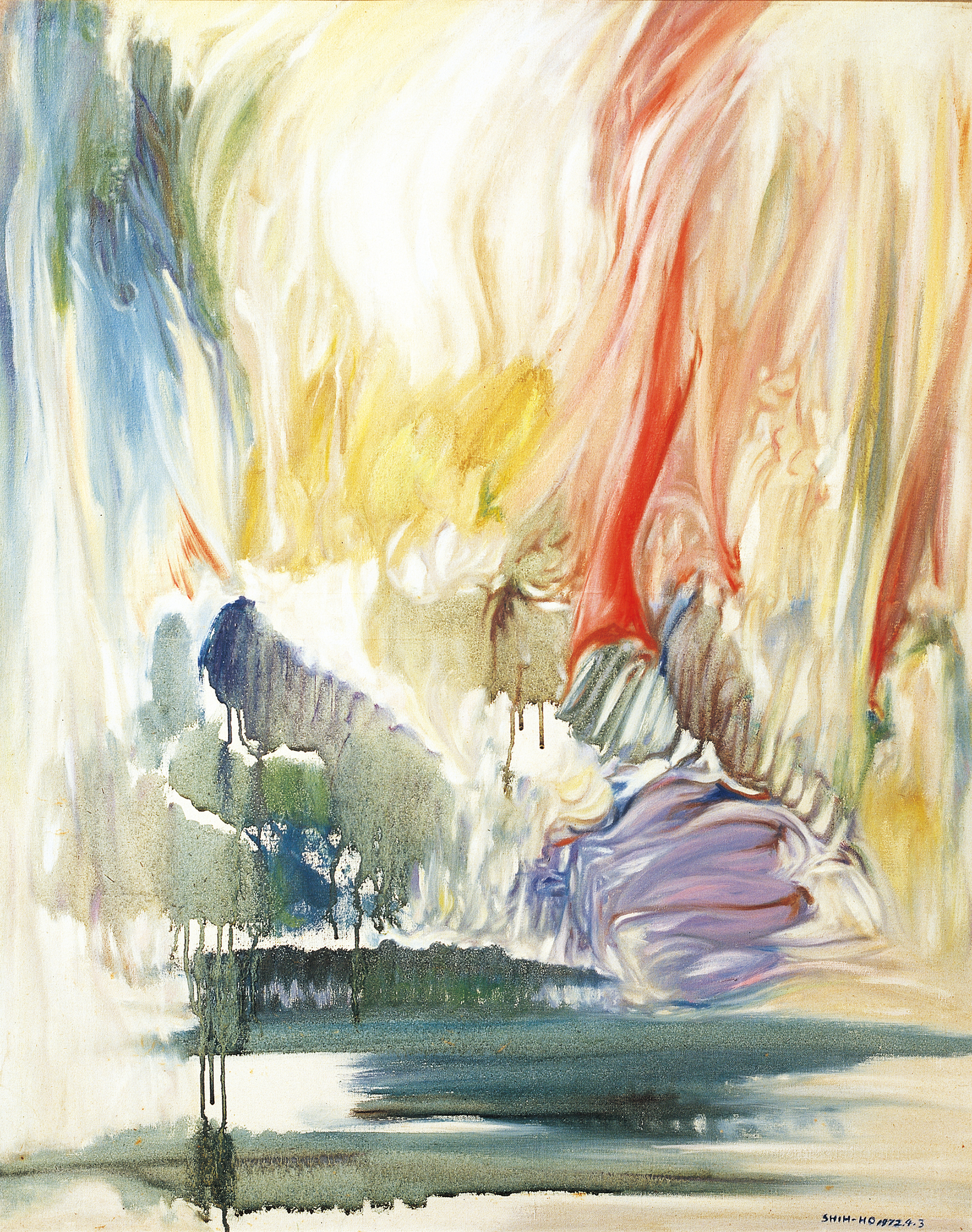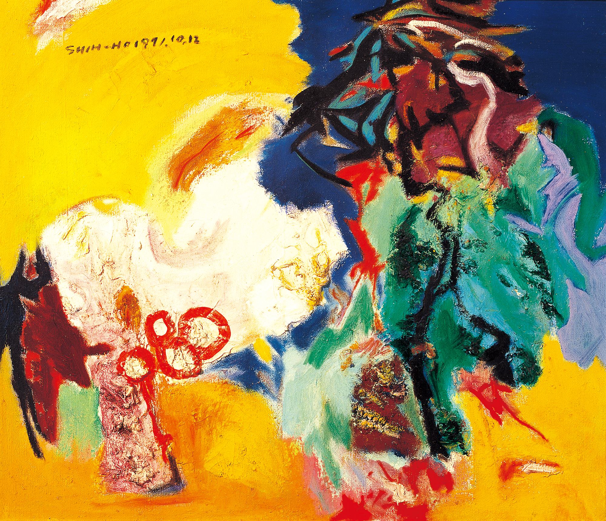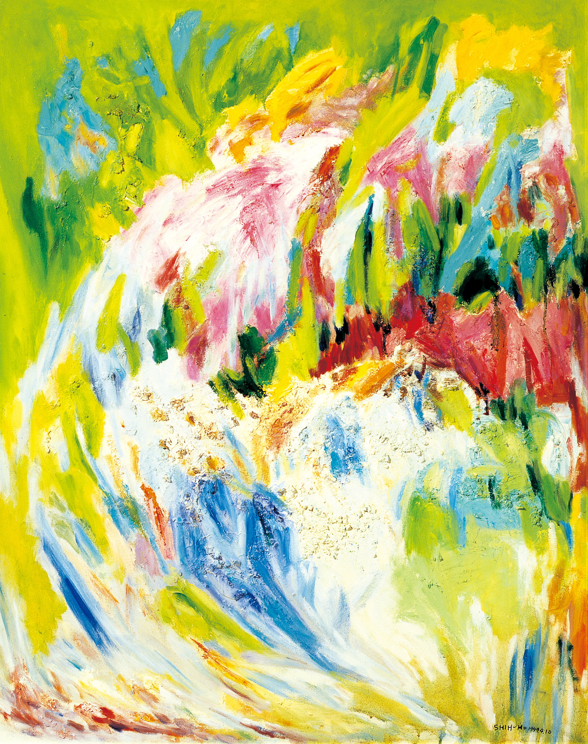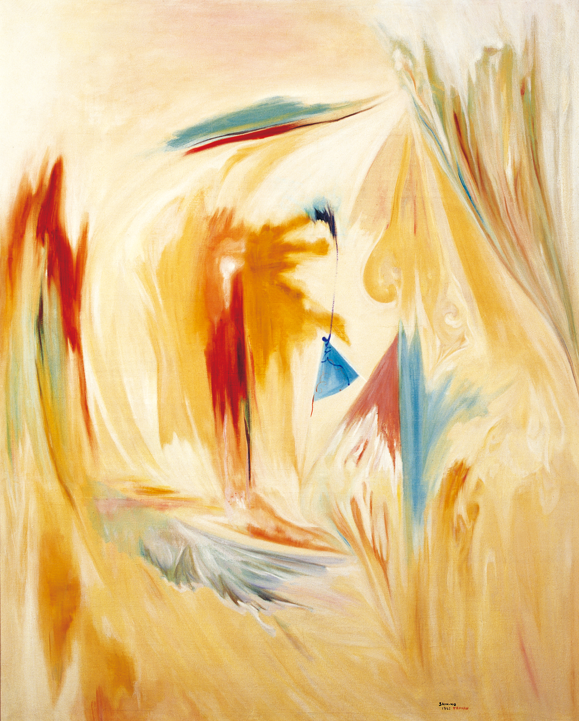 所以,一幅富有藝術性的中國現代繪畫,其內涵是作者自我思想與情感(由現代的感應所獲致),在無限地追求著永恆的理念,因「個性」的發揮而含有其民族精神和新時代意識的表現;色彩的生命、線與點的律動、面的變化交合,在諧調的構成中現出美的韻味,傳達了作者創造的意慾于鑑賞者之前,得以共鳴。誠然,這幅畫是保存著東方(中國)特有風格的,同時具有國際性的。