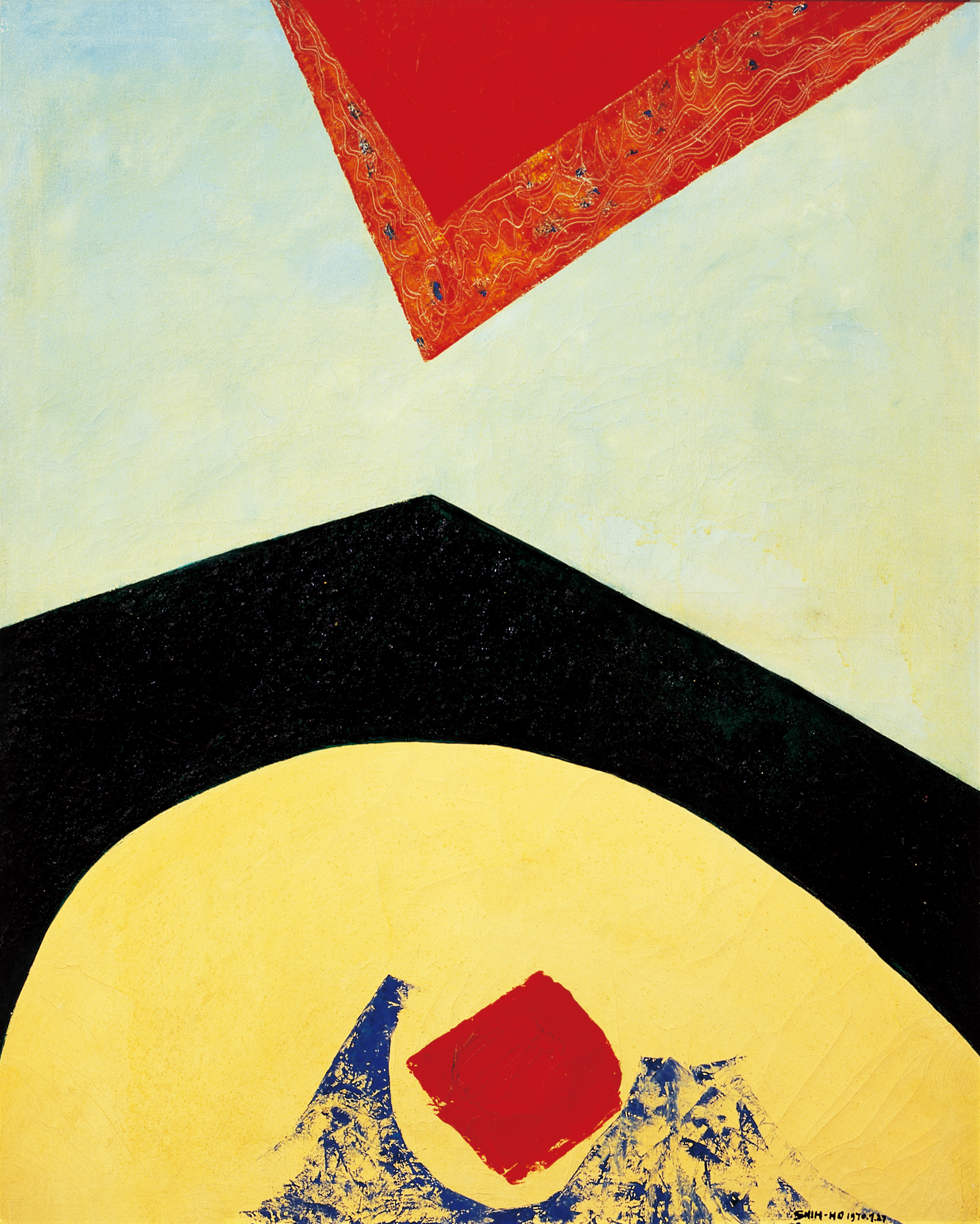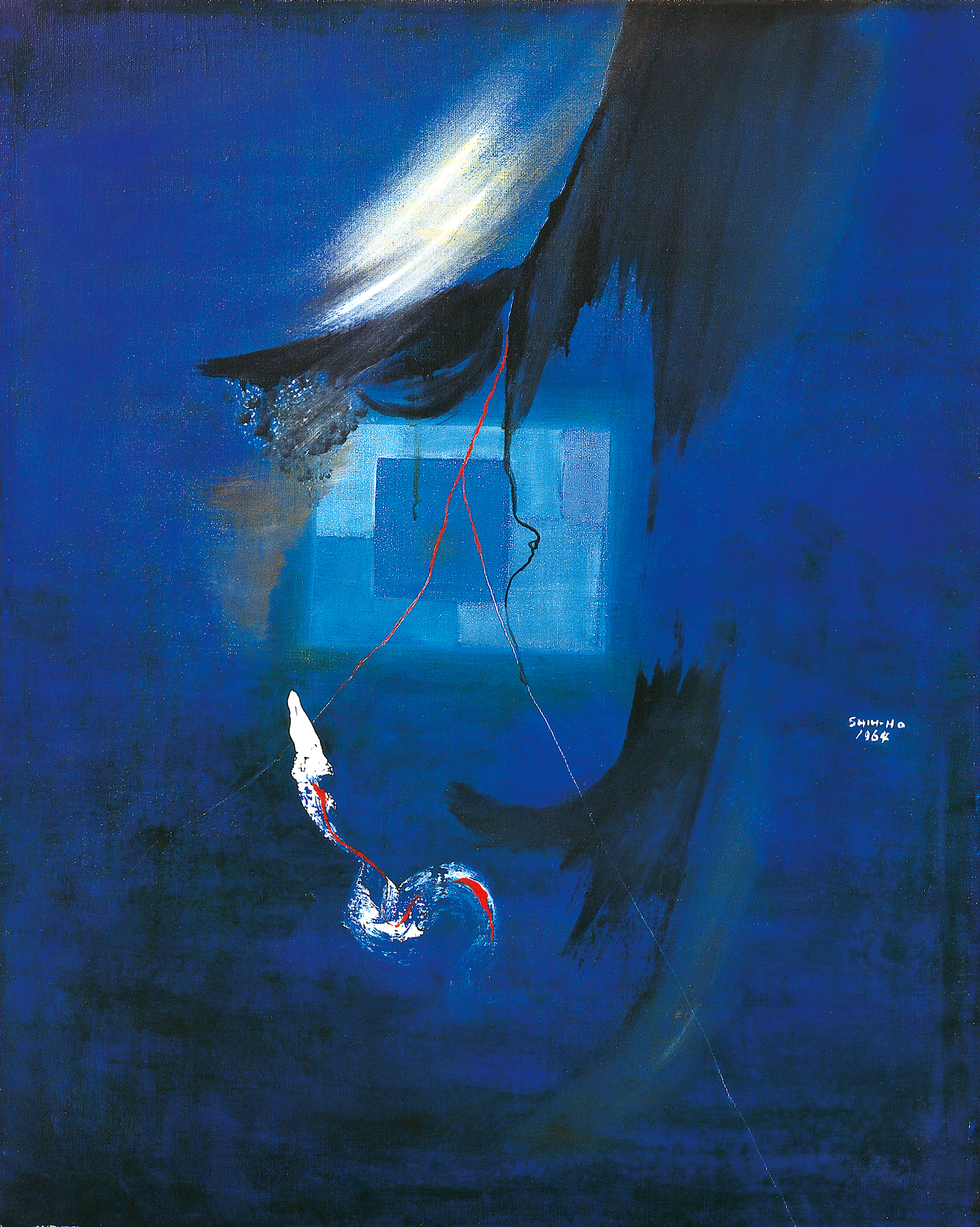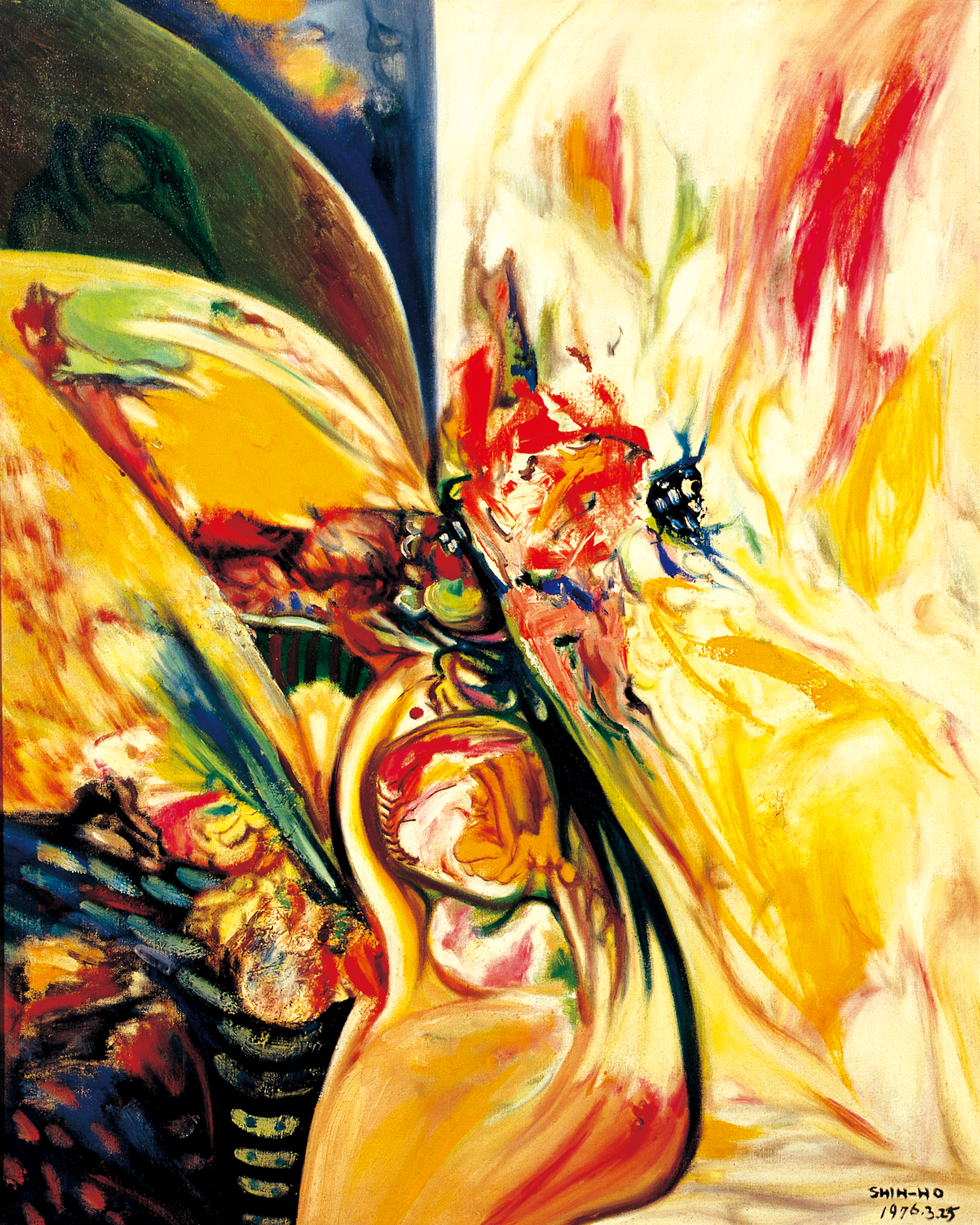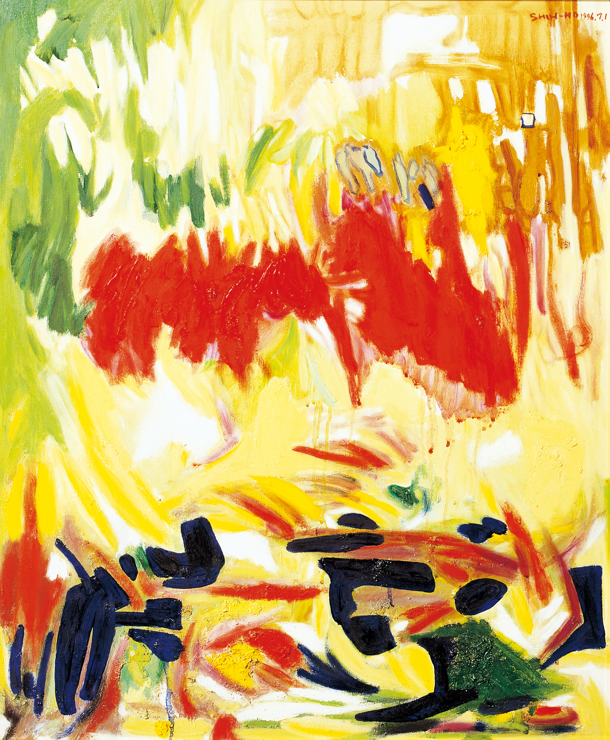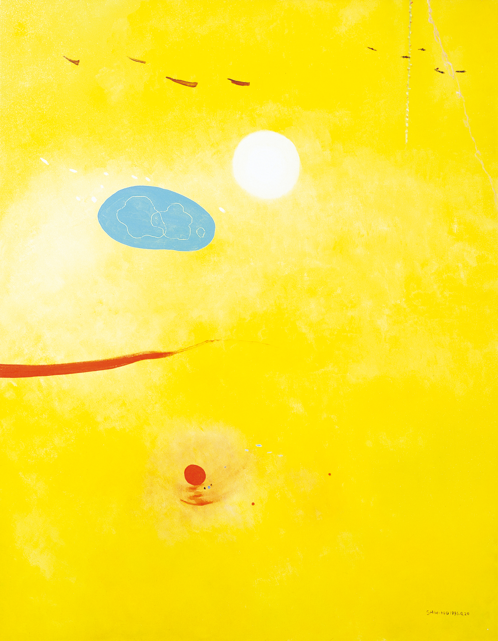 所以,一幅富有藝術性的中國現代繪畫,其內涵是作者自我思想與情感(由現代的感應所獲致),在無限地追求著永恆的理念,因「個性」的發揮而含有其民族精神和新時代意識的表現;色彩的生命、線與點的律動、面的變化交合,在諧調的構成中現出美的韻味,傳達了作者創造的意慾于鑑賞者之前,得以共鳴。誠然,這幅畫是保存著東方(中國)特有風格的,同時具有國際性的。