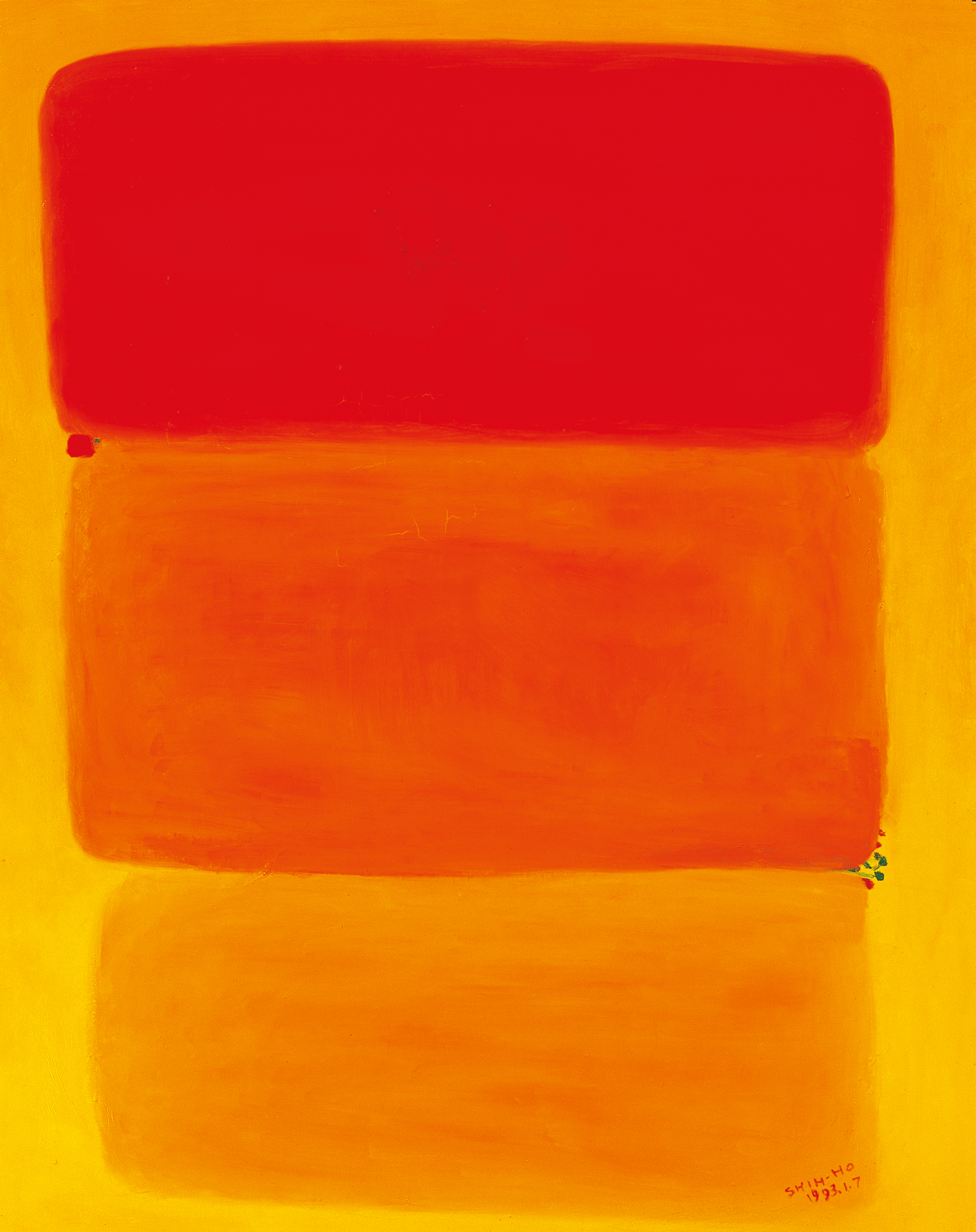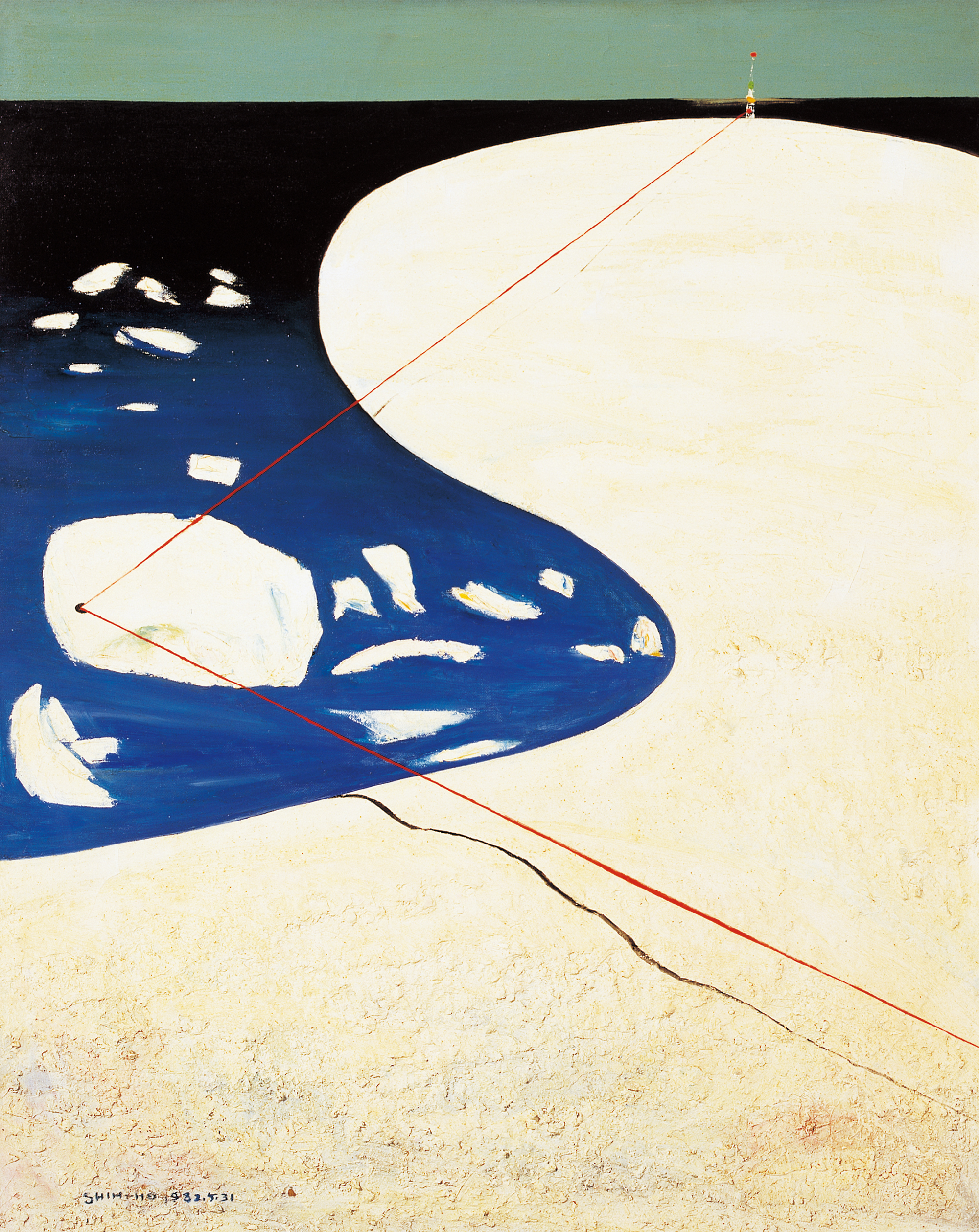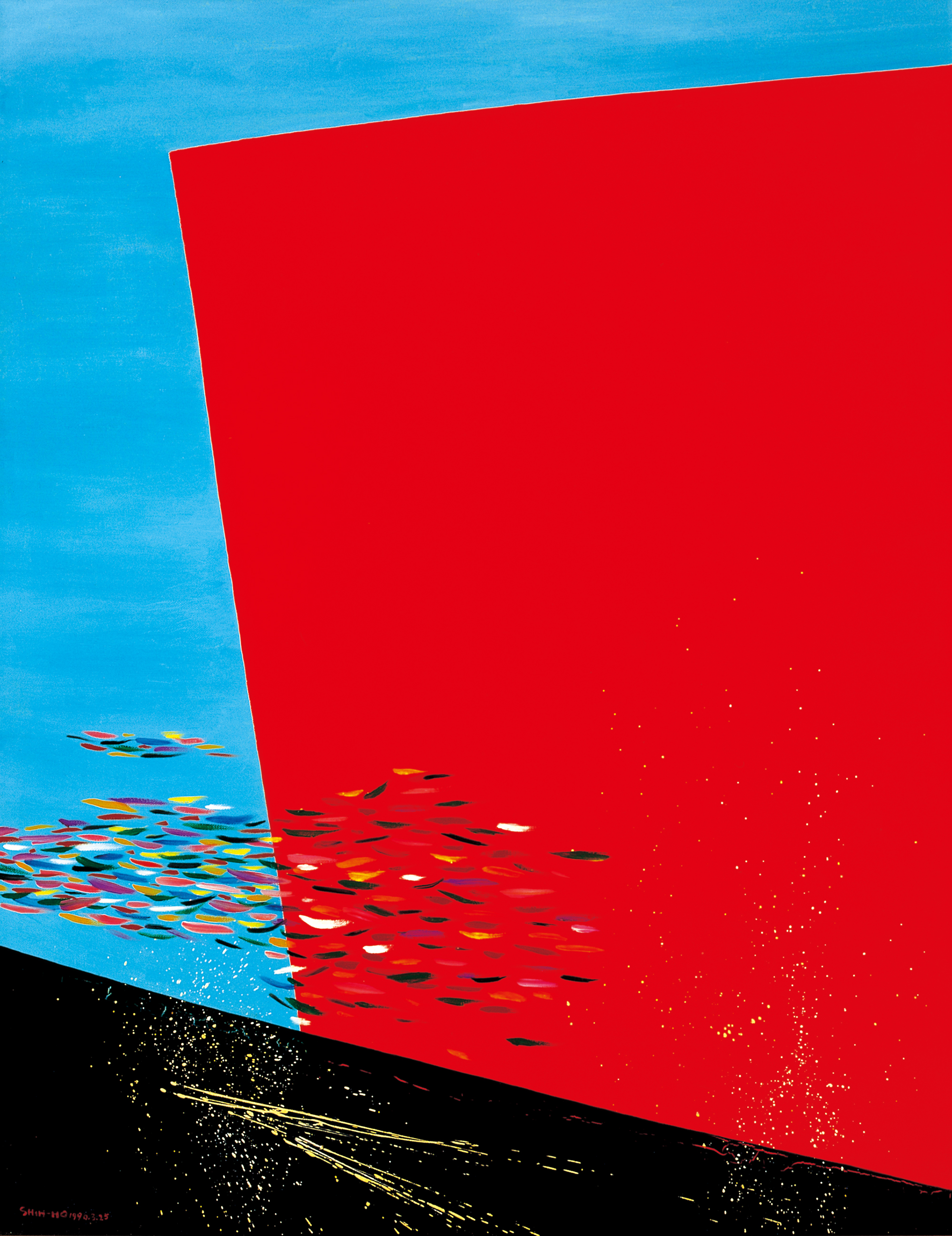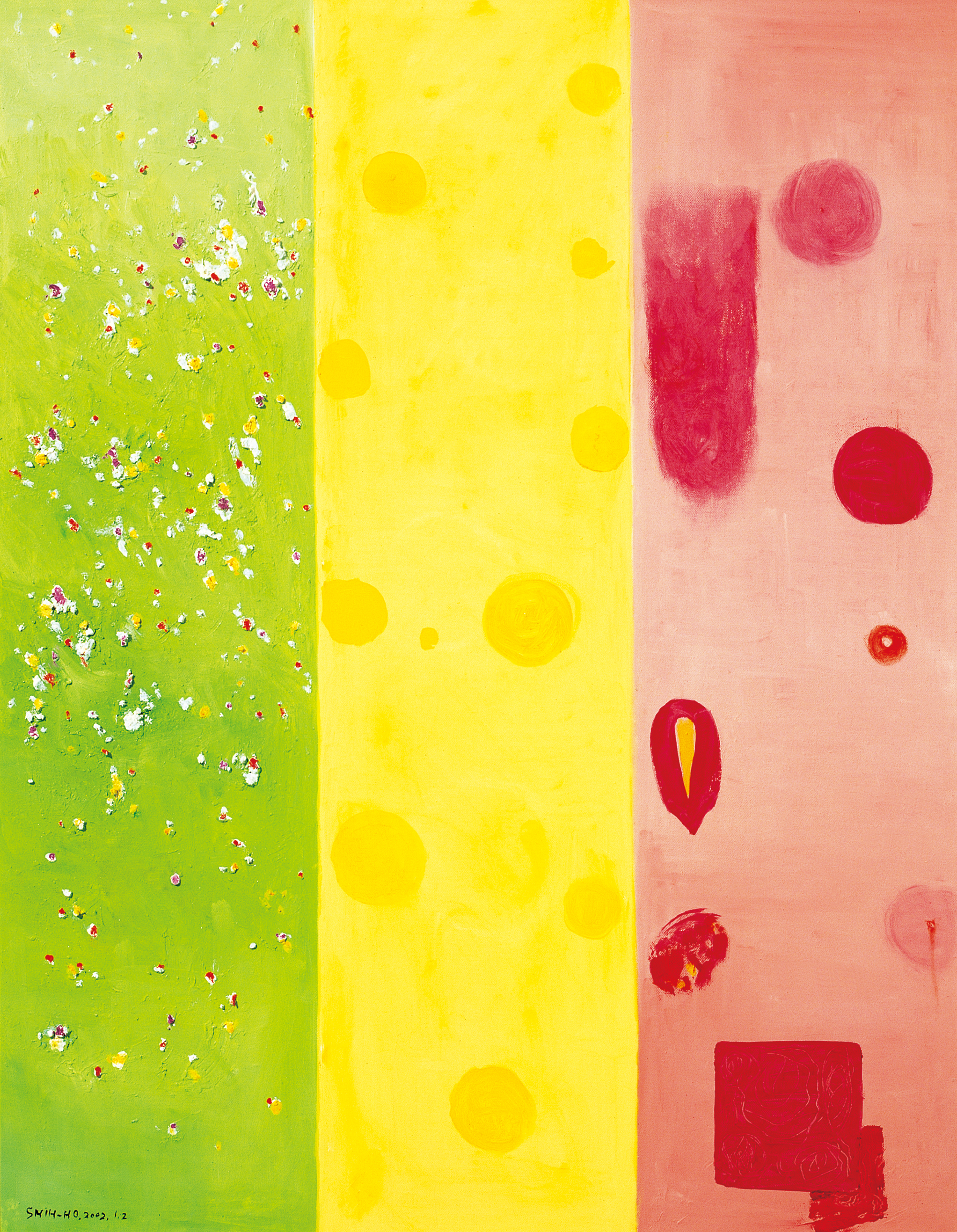 所以,一幅富有藝術性的中國現代繪畫,其內涵是作者自我思想與情感(由現代的感應所獲致),在無限地追求著永恆的理念,因「個性」的發揮而含有其民族精神和新時代意識的表現;色彩的生命、線與點的律動、面的變化交合,在諧調的構成中現出美的韻味,傳達了作者創造的意慾于鑑賞者之前,得以共鳴。誠然,這幅畫是保存著東方(中國)特有風格的,同時具有國際性的。