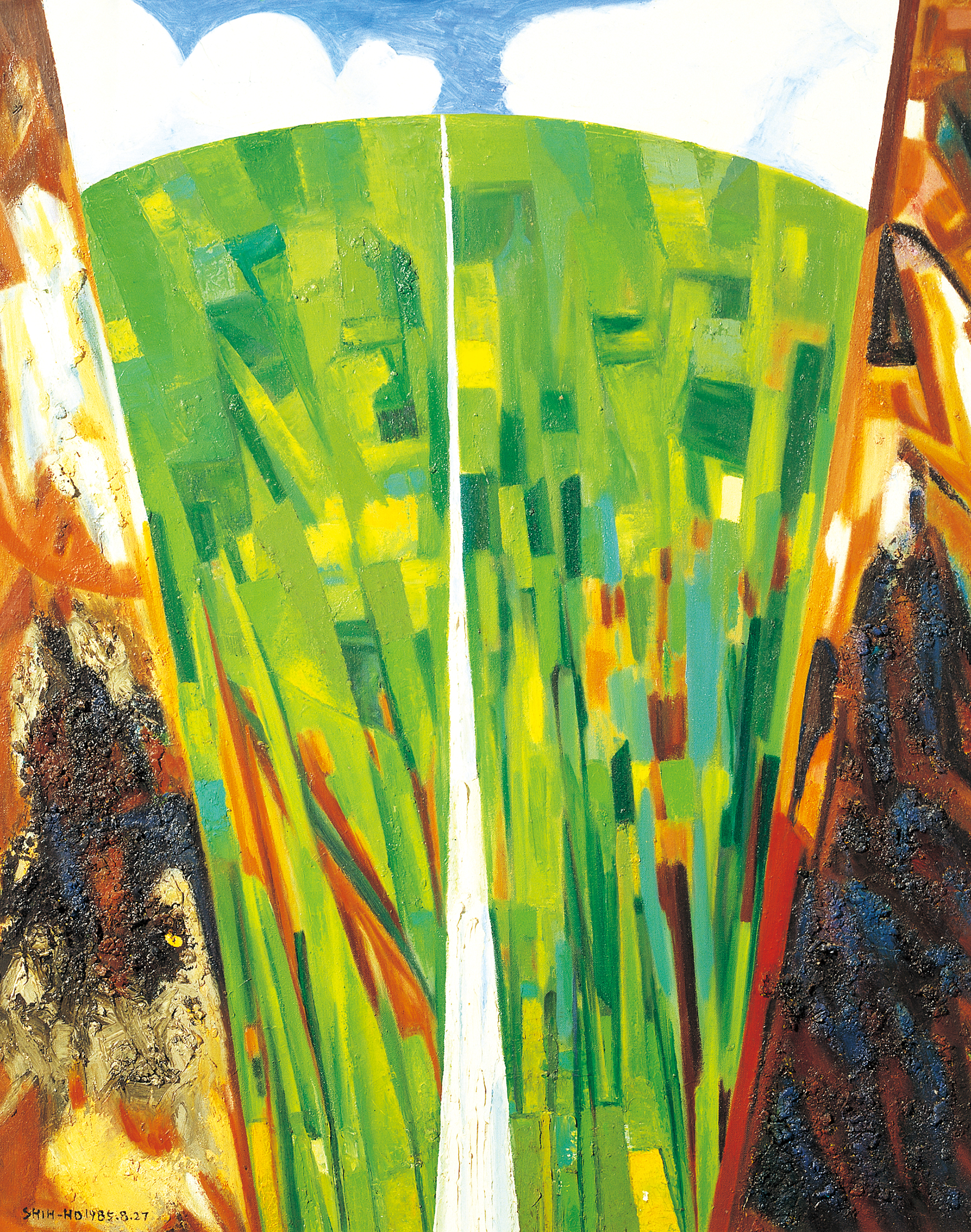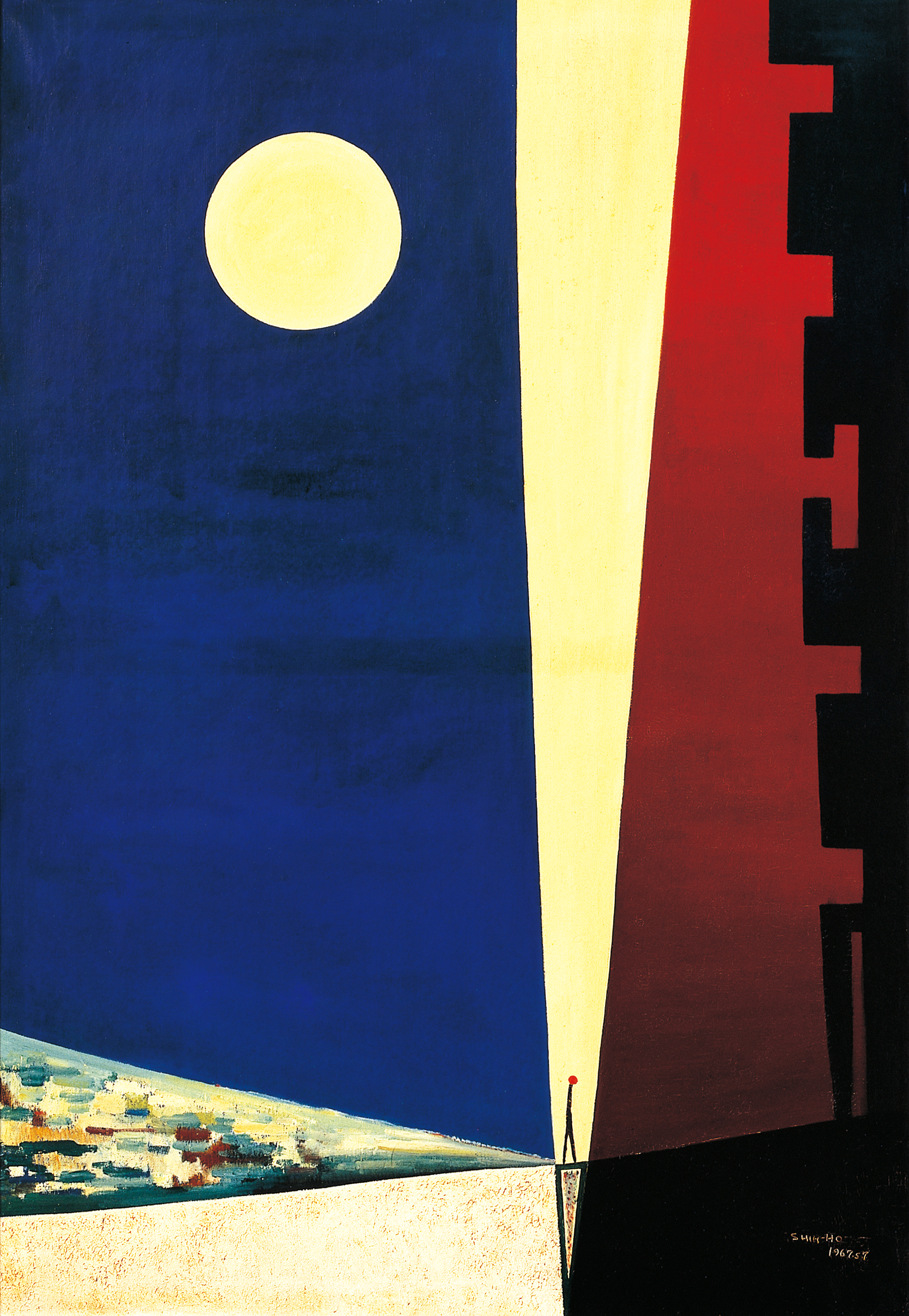 1945年第二次世界大戰結束後返台,引進了20世紀現代藝術並致力於東方思維與台灣精神的抽象繪畫創作。